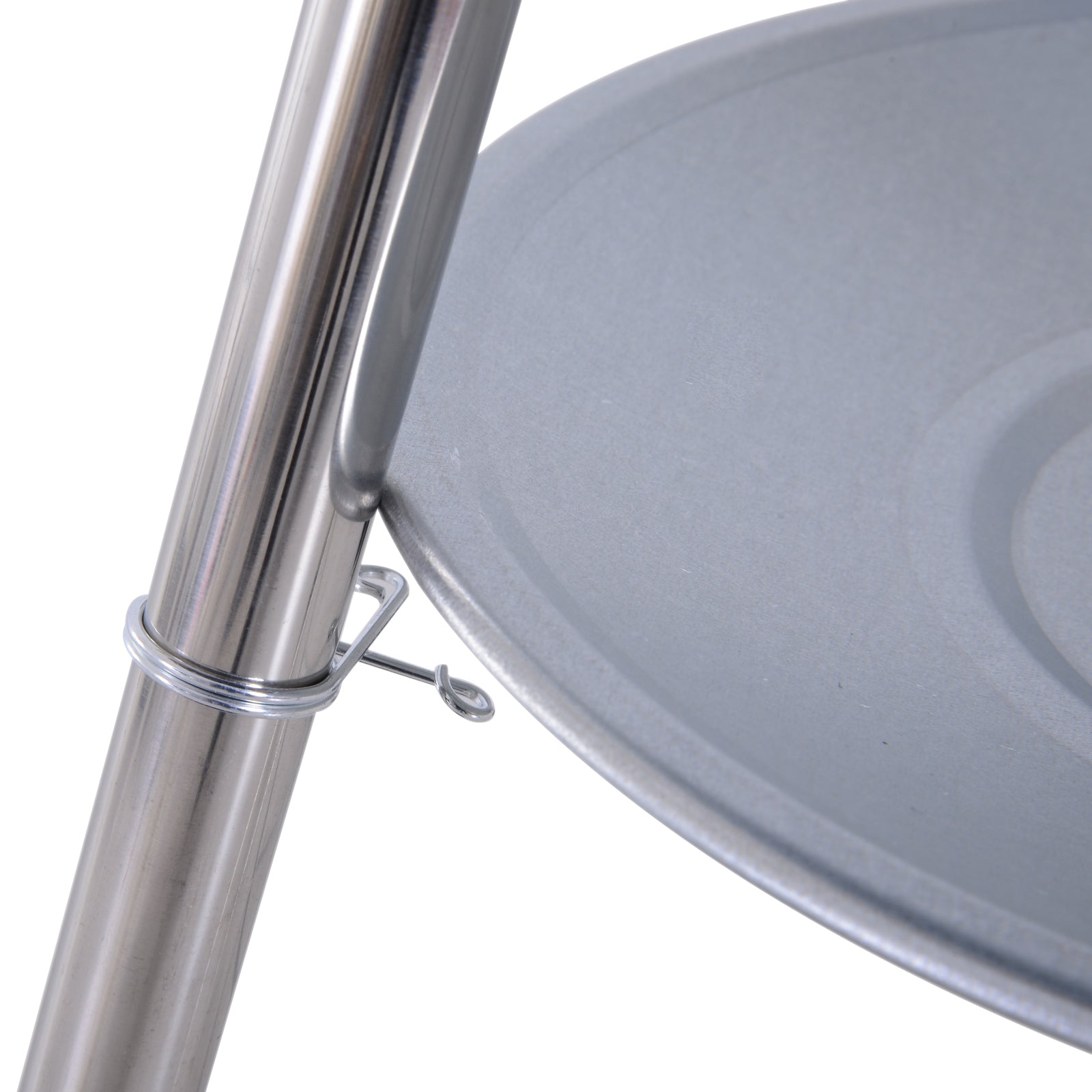 - Three stainless steel legs with two wheels for movement