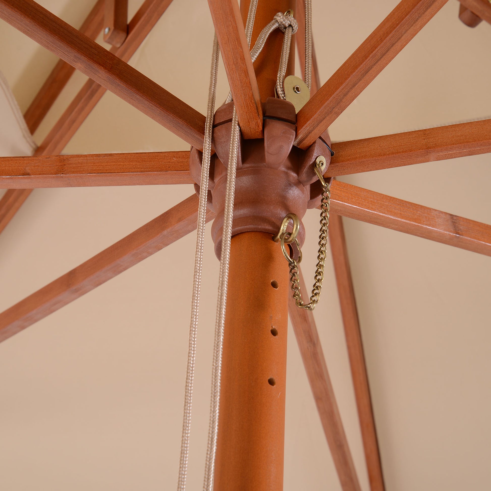 These Outsunny sunshades for the garden are a perfect complement to any outdoor area. Balcony parasol is made of bamboo and cottonwood, and the sun parasol's frame is solid and sturdy. With an easy opening and folding pully system, the sun umbrella for the garden can be erected in seconds. This large garden umbrella is an excellent addition to your garden furniture in your garden, courtyard, and even pool area.