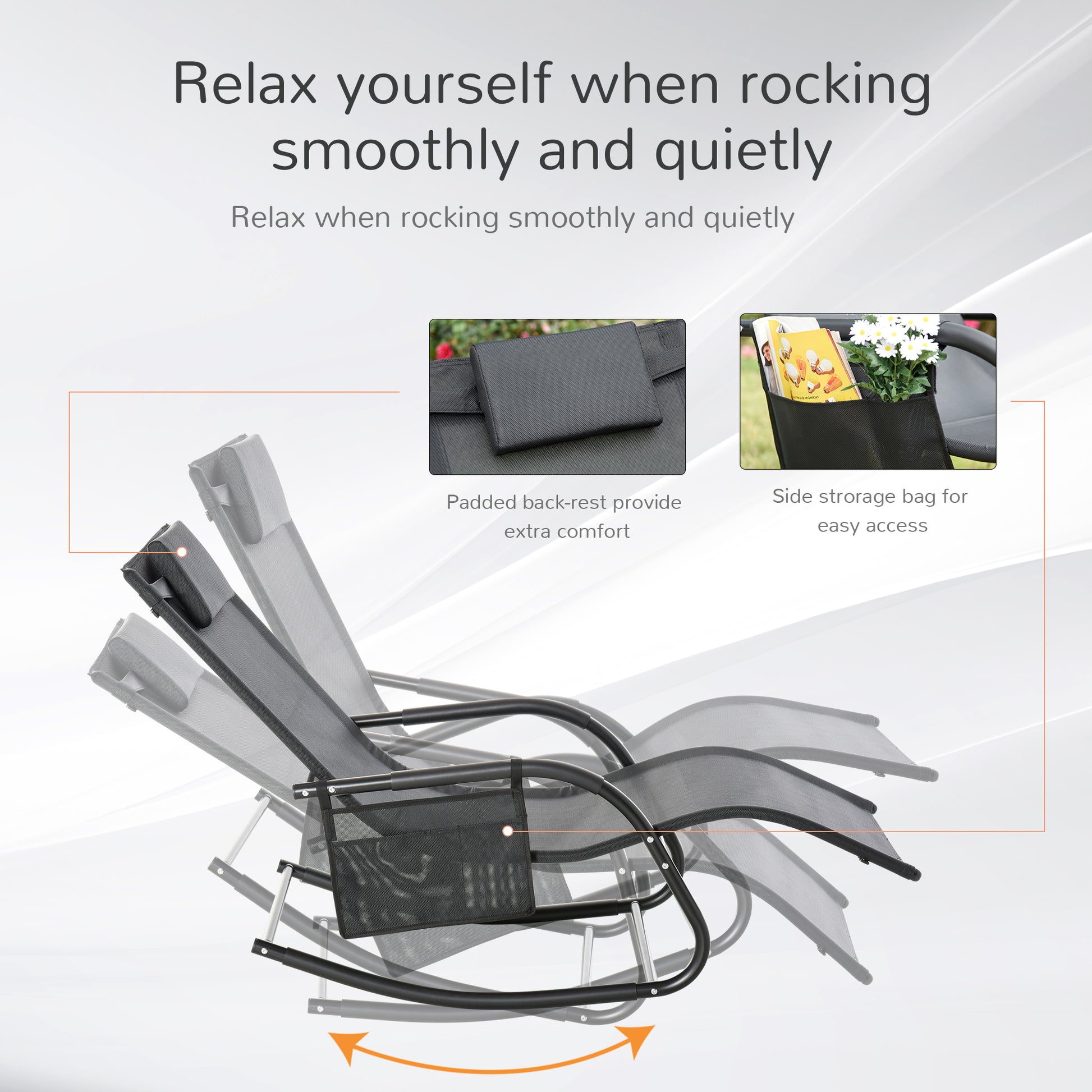 Outsunny Breathable Mesh Rocking Chair Patio Rocker Lounge for Indoor & Outdoor Recliner Seat w/ Removable Headrest for Garden and Patio Black