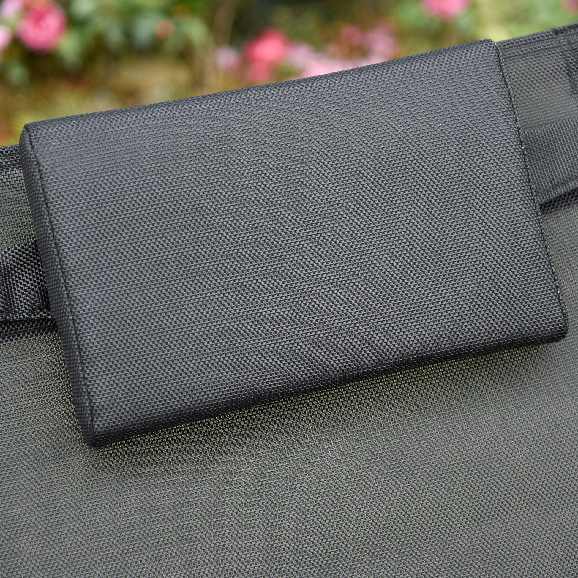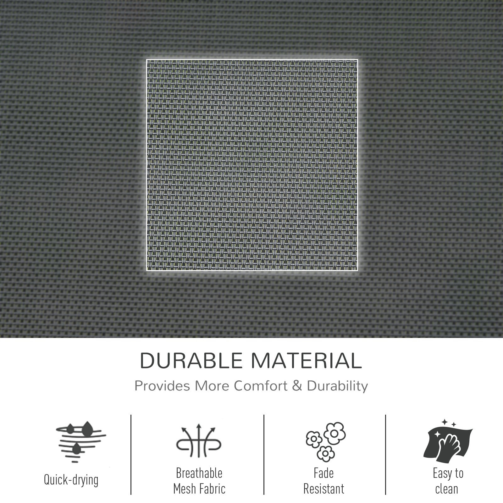 This outdoor rocking chair from Outsunny is a great way to relax outdoors. The curved frame has been made with your body comfort in mind, hugging to the contour of its shape. The seat is wrapped in mesh fabric which holds yours body in place, with a removable top pillow for head and neck comfort. Our patio rocking chair is finished with a removable side pocket, keeping everything you need next to you and rubber pads on the metal frame for protection.
