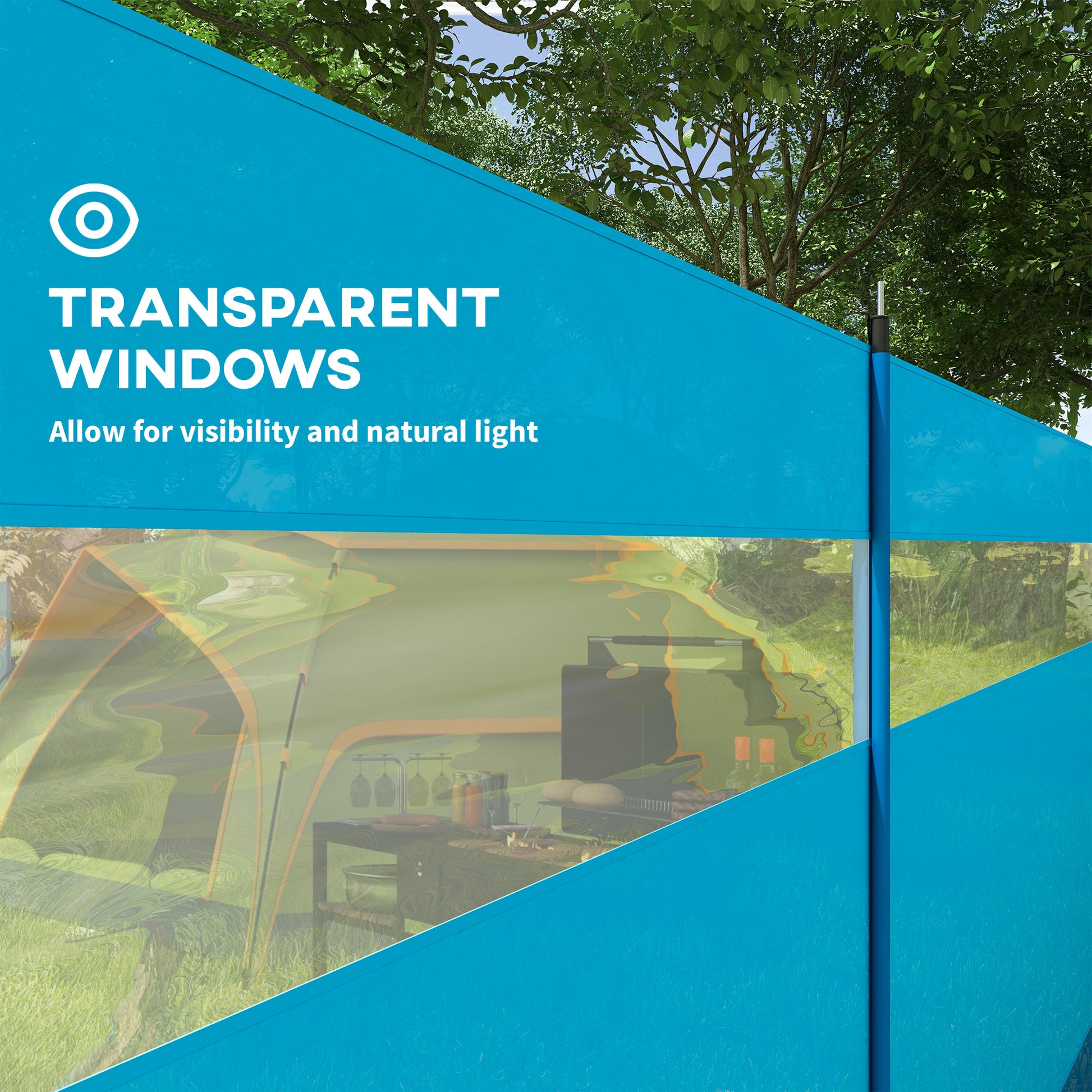 Set up your slice of paradise shielded from gusts and glare with the Outsunny Windbreaker. Whether at the beach or enjoying a picnic, this windbreak offers protection from the elements, while transparent window panels invite in sunlight and scenery. Its robust steel poles and anchoring system promise steadfast tranquillity. Plus, it all tucks neatly into a carry bag, ready for your next outdoor adventure.