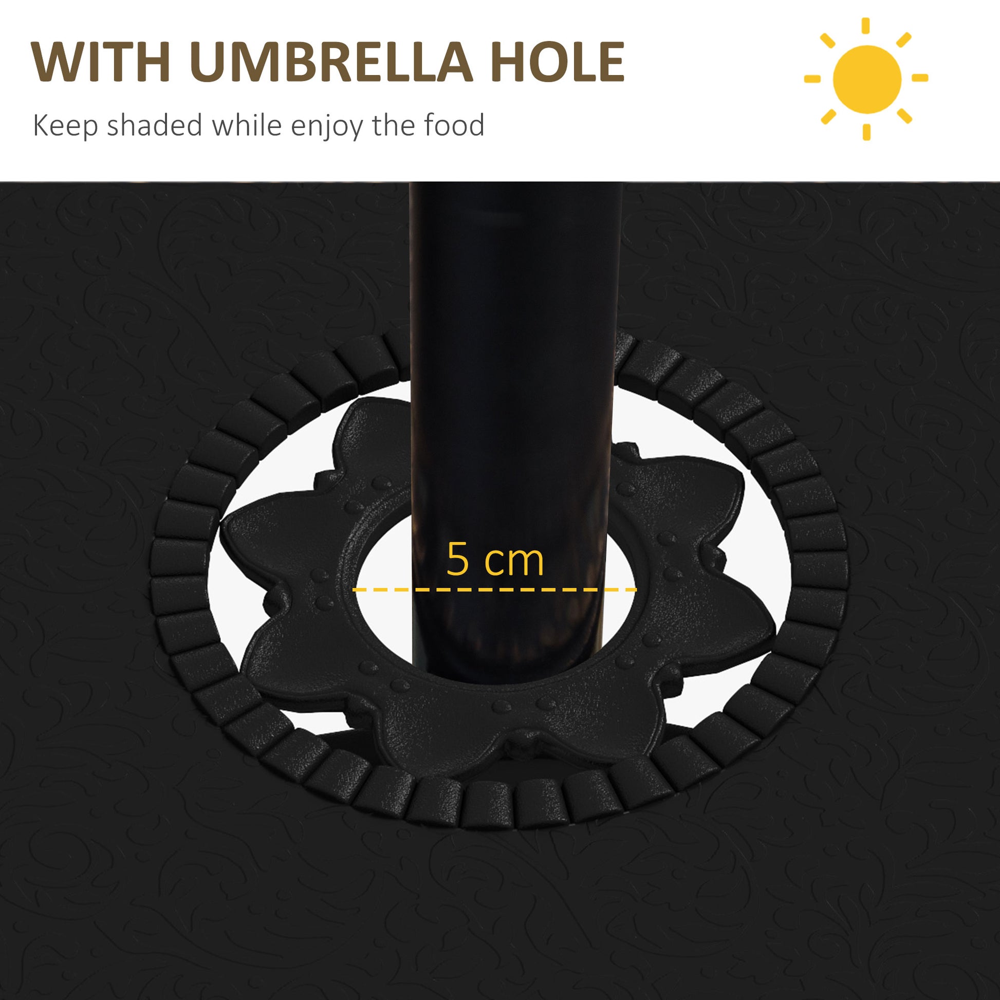 Outsunny Cast Aluminium 4 Seater Outdoor Dining Set with Cushions Parasol Hole Black