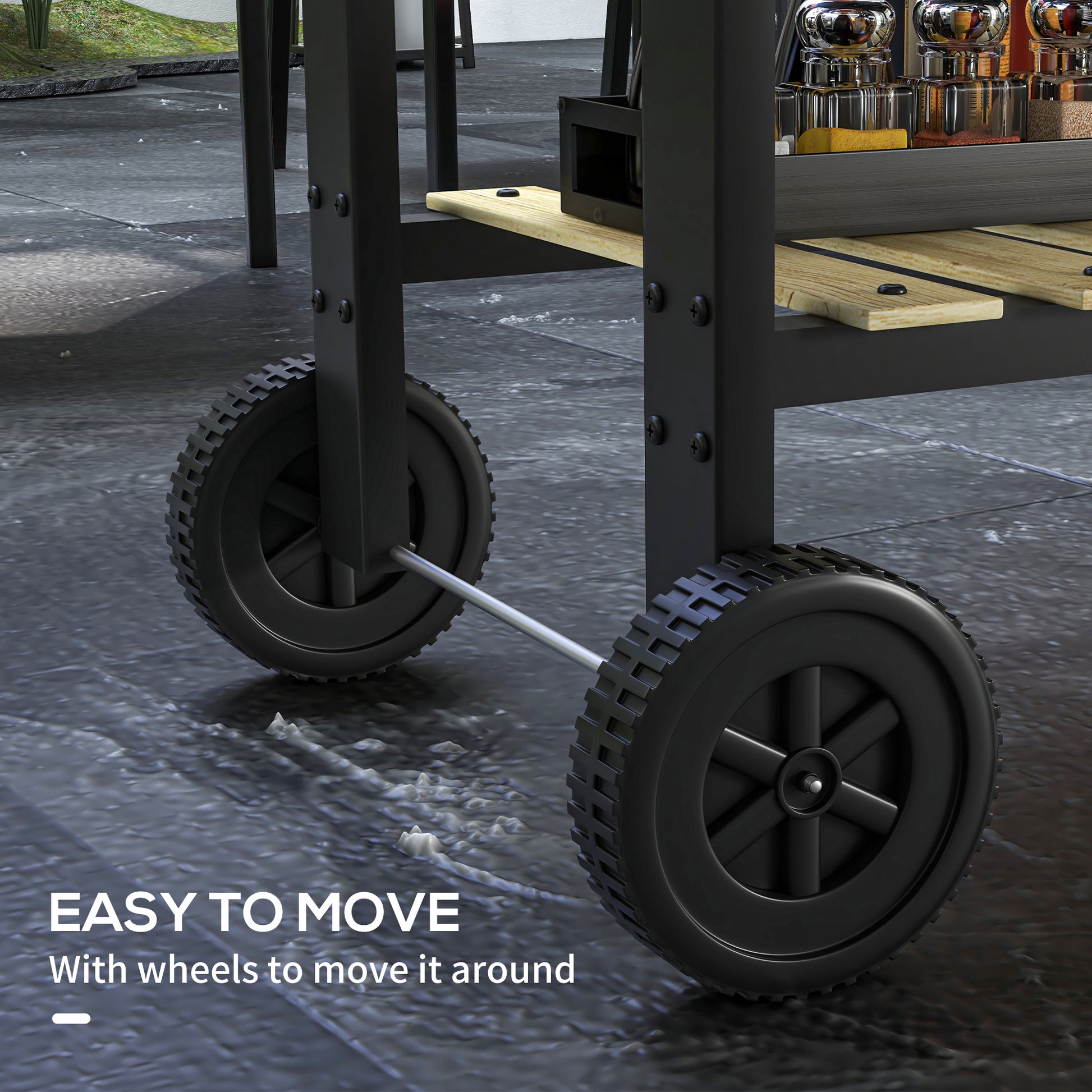 Get some friends together, and enjoy excellent food from your own personal BBQ. Roll the Outsunny's barbecue grill to your party spot and the large cooking area with two separate adjustable grilling grates can cook up to 30 burgers, supporting 6-13 servings. Designed with a bottom shelf and a side shelf to store essential items. Start enjoying unforgettable meals with your family and friends in the joys of nature.