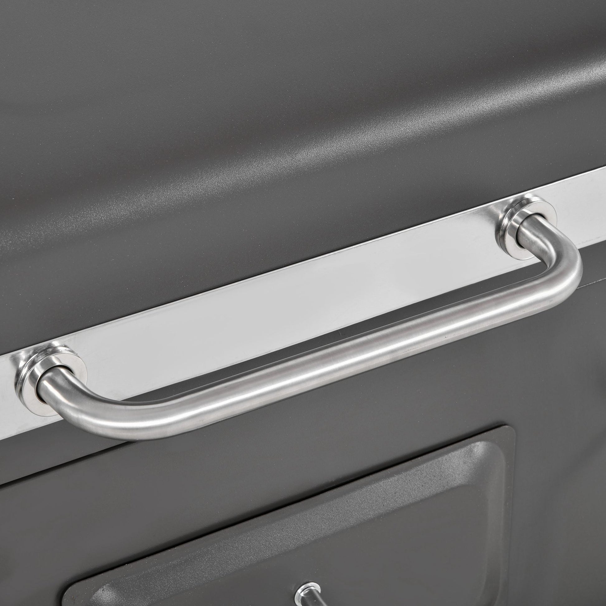 - Middle compartment for holding charcoal, with a secure door and stainless steel handle
