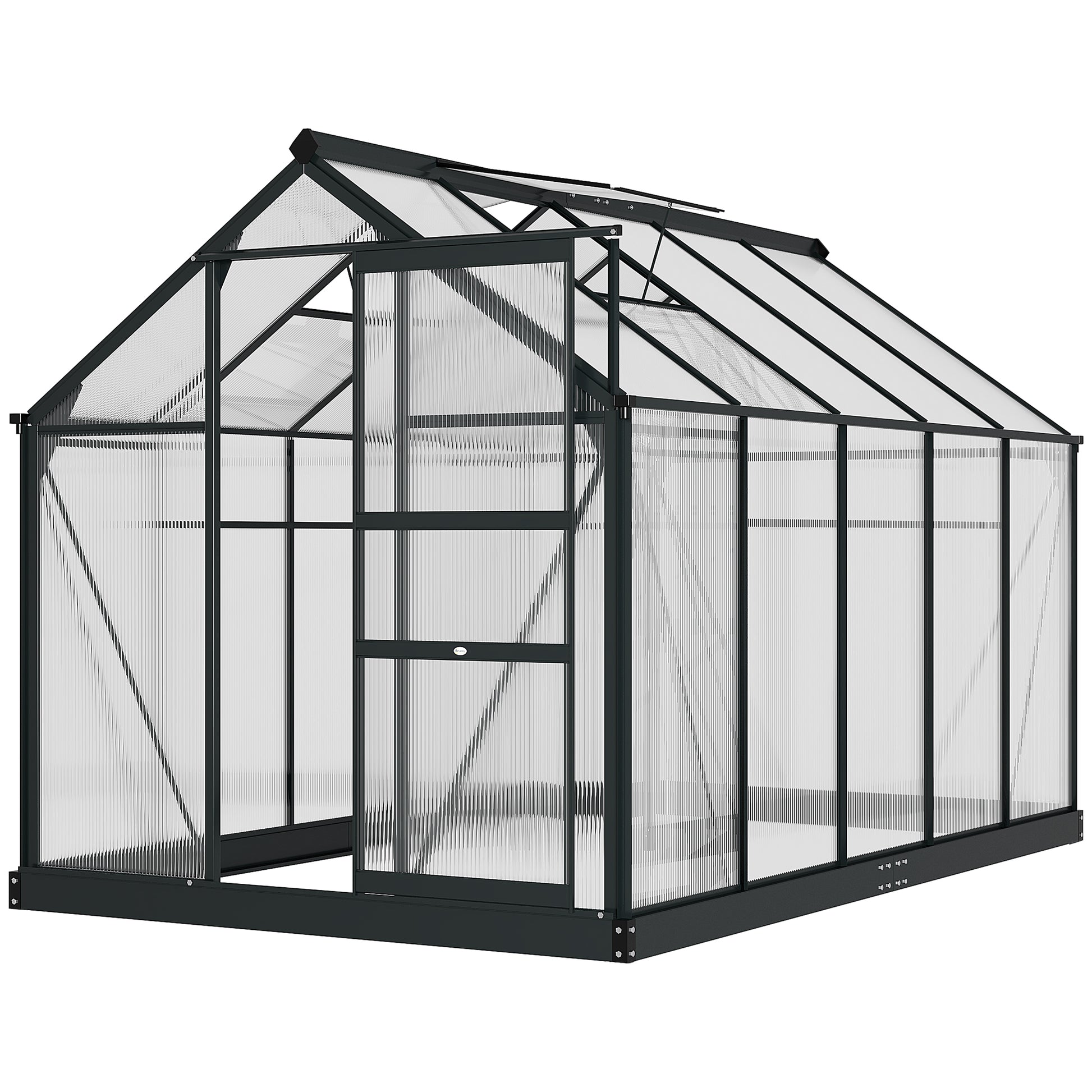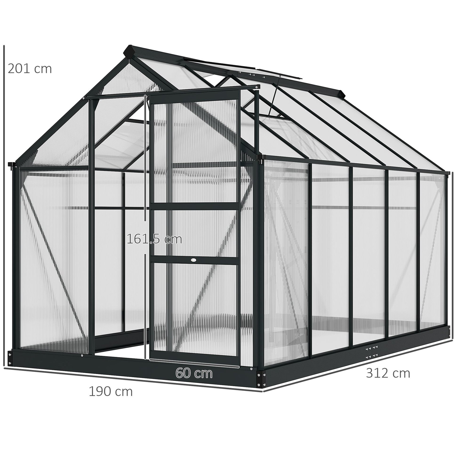 Outsunny Clear Polycarbonate Greenhouse Large Walk-In Green House Garden Plants Grow Galvanized Base Aluminium Frame with Slide Door, 6 x 10ft