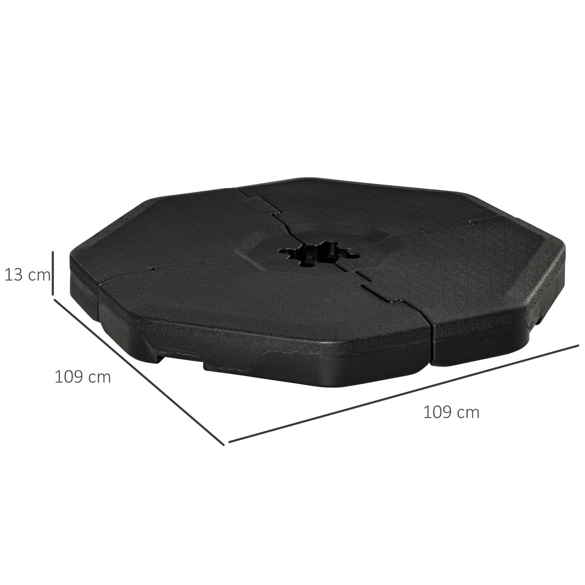 Exclusively for our Outsunny Cantilever banana and roma parasols, these parasol base weights will firmly hold them in place this summer. All pieces are fillable with water and sand - creating 104kg water 125kg sand weight - or a combined total of 140kg if you required something heavier. Made from strong HDPE plastic, each patio umbrella base comes with a port hole to fill up and empty easily, finished with a handle on each to carry with ease.