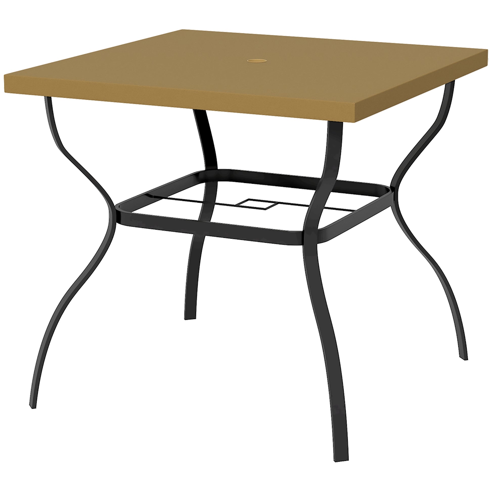 Outsunny Dia. 80cm Square Garden Dining Table with Umbrella Hole, Outdoor Dining Table with Marble Effect Top for 4 People, Black/Brown