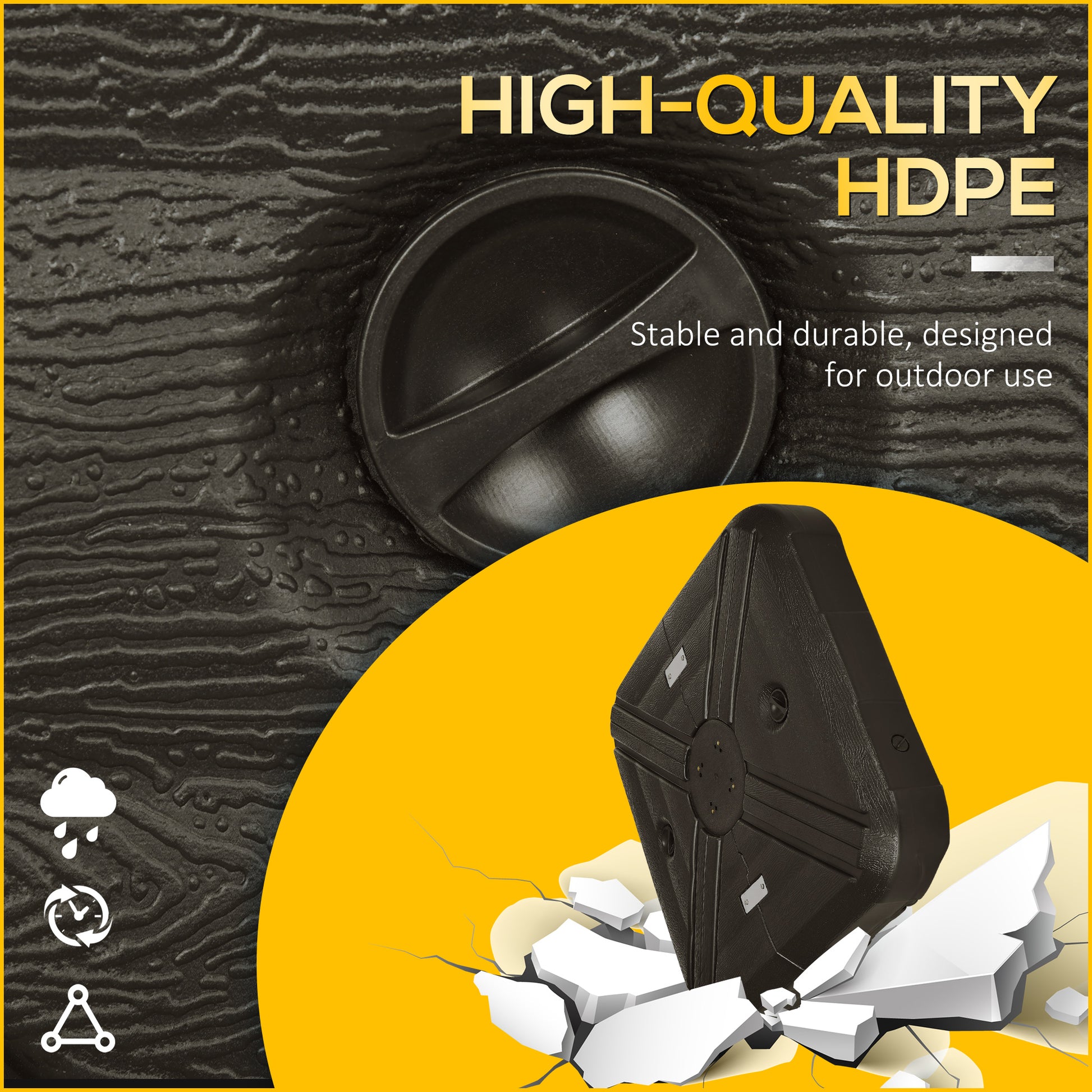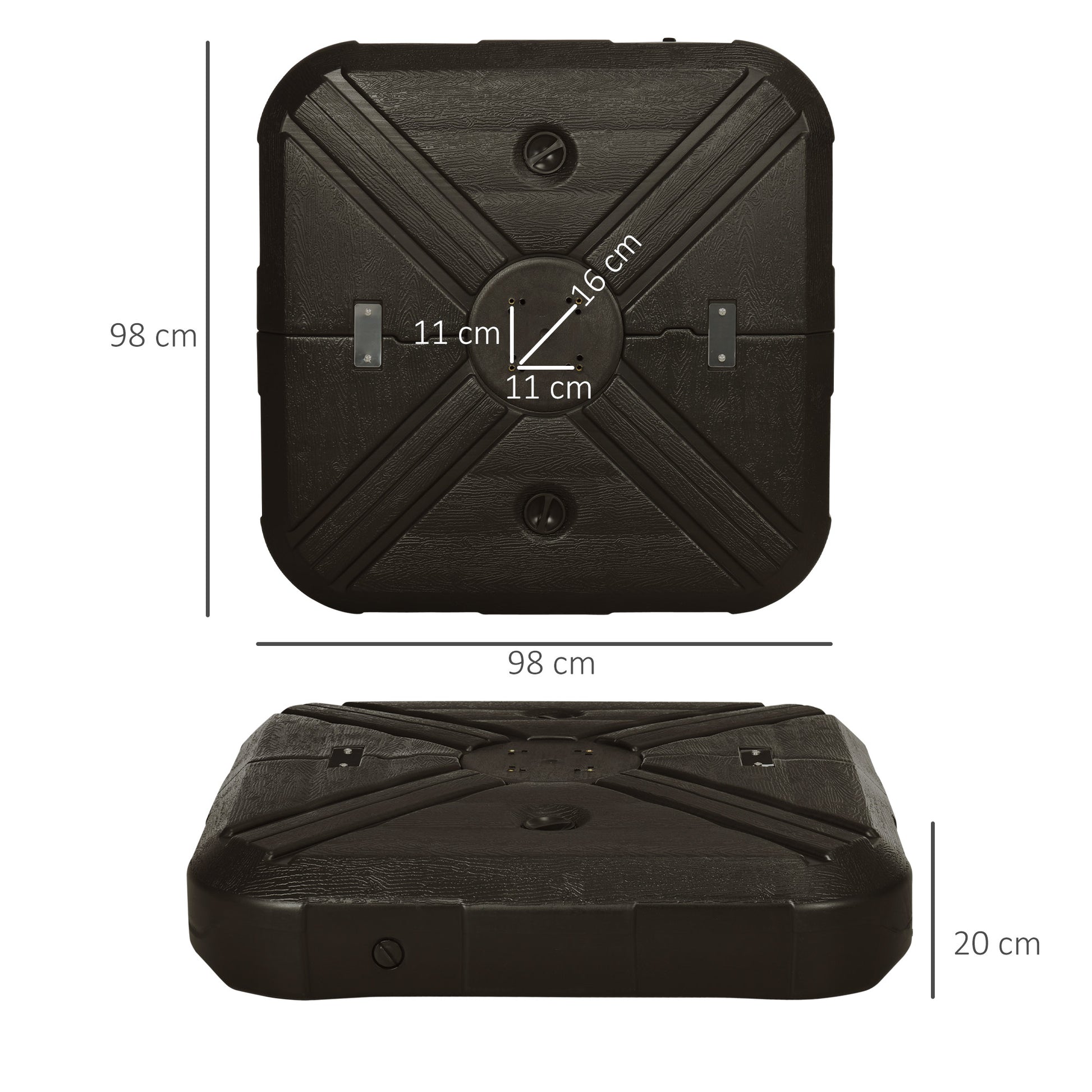 Ensure your 360° rotating patio offset umbrella is always held firmly in place with the base for cantilever parasol from Outsunny. Made from strong HDPE, it needs to be filled with water or sand to increase the weight, keeping stability outdoors. Comes with smooth wheels, easy to move around. Whether you wish to use this for the garden, patio, or poolside, this is the parasol base for you. Combine our umbrella weight base with a cantilever roma umbrella and create your own oasis under shade.