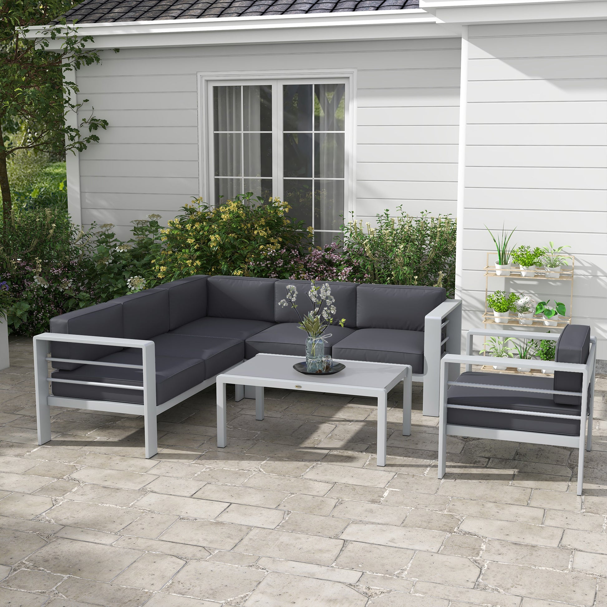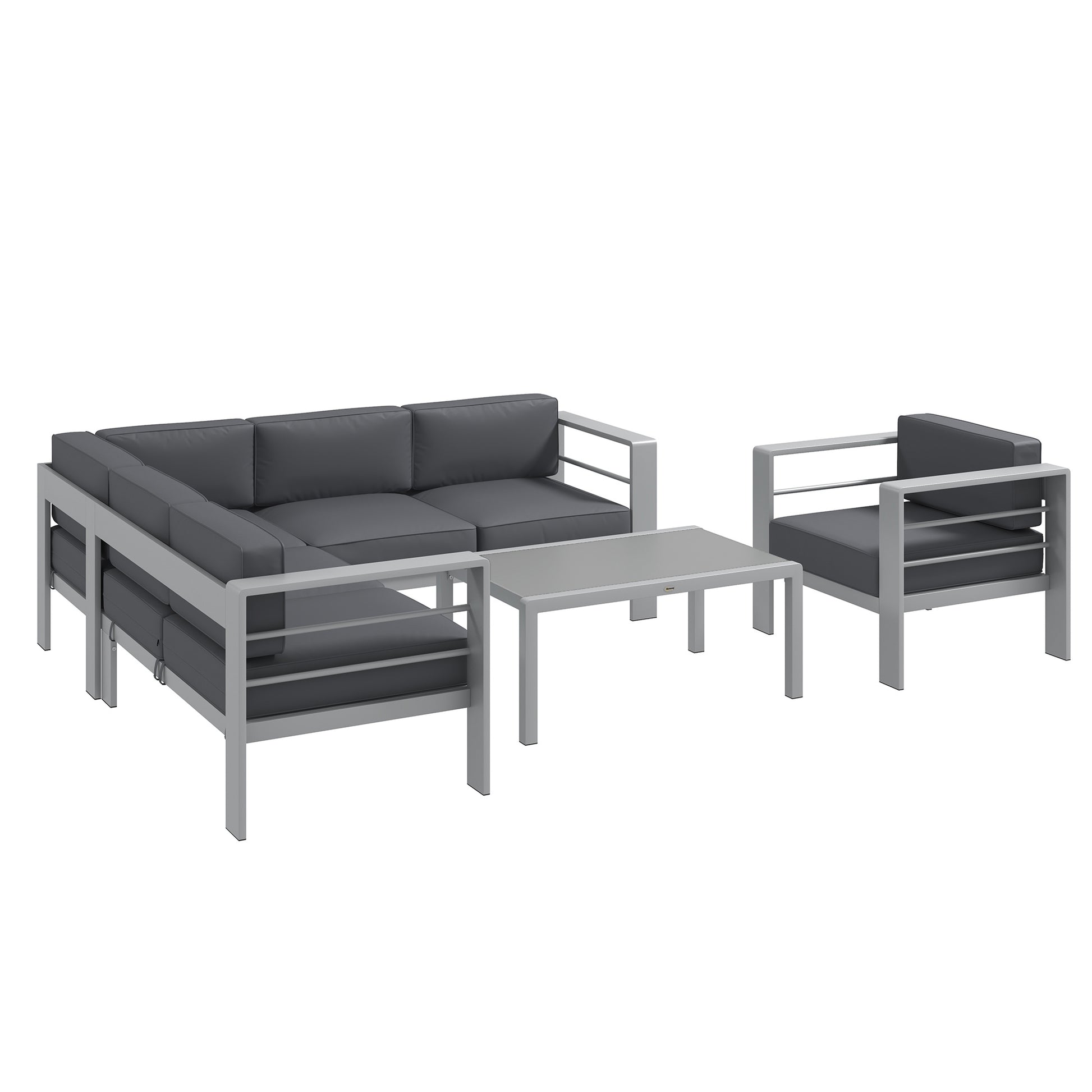 Outsunny Five-Piece Aluminium Garden Sofa Set, with Glass-Top Table - Grey