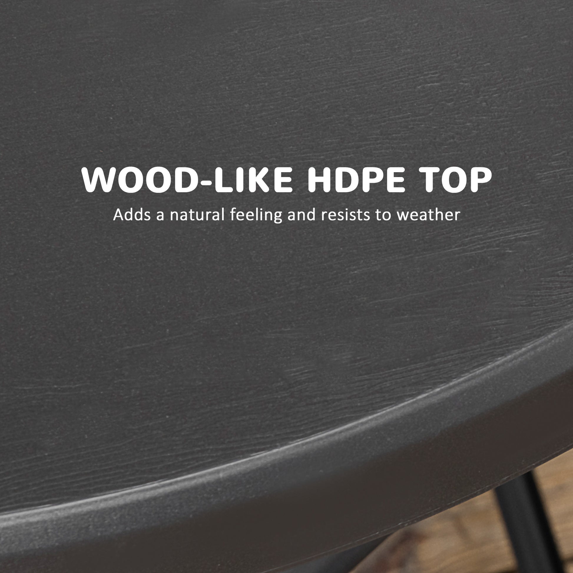 Outsunny Foldable Round Garden Table for 4, Outdoor Dining Table with HDPE Tabletop and Steel Frame, 80 x 80 x 73 cm, Dark Grey