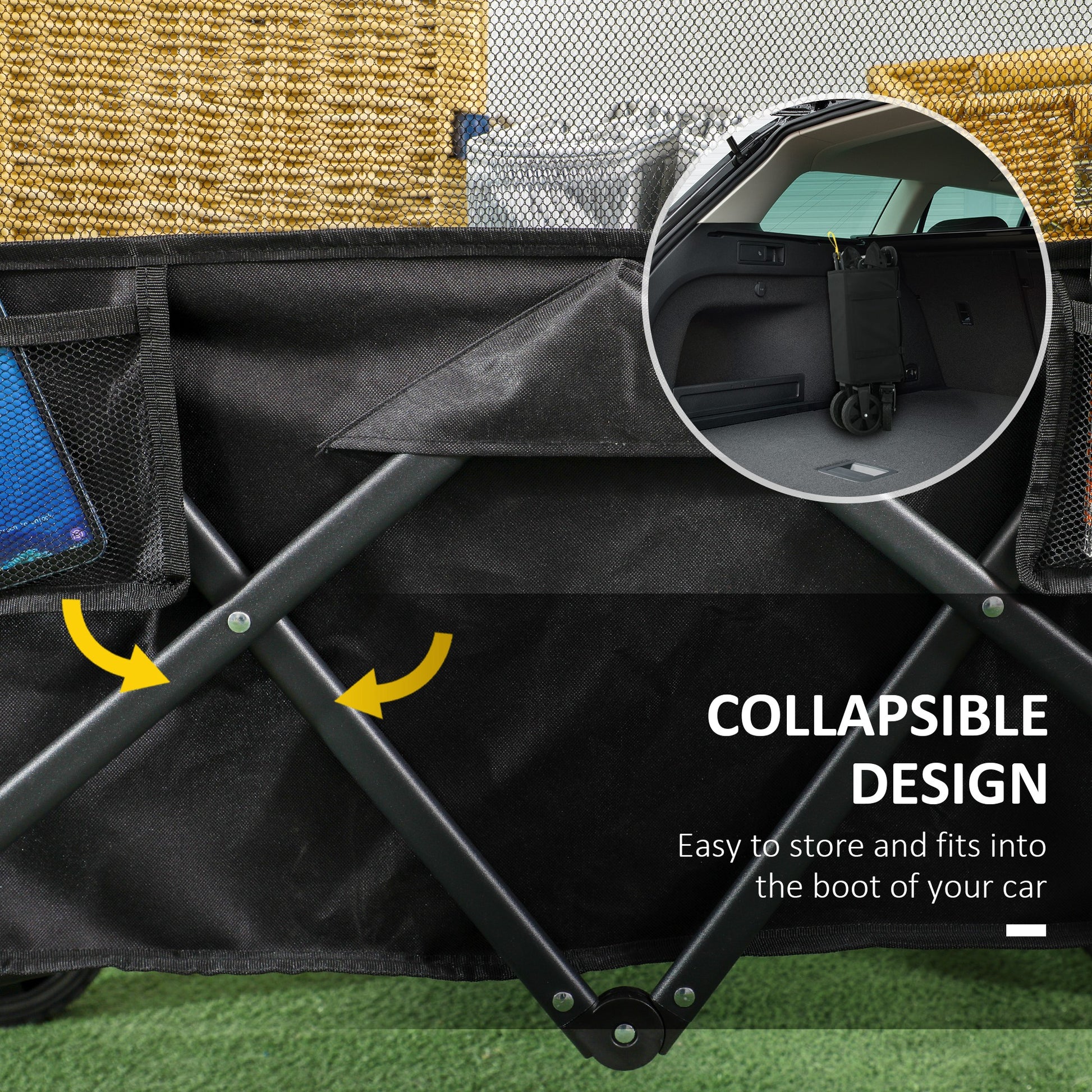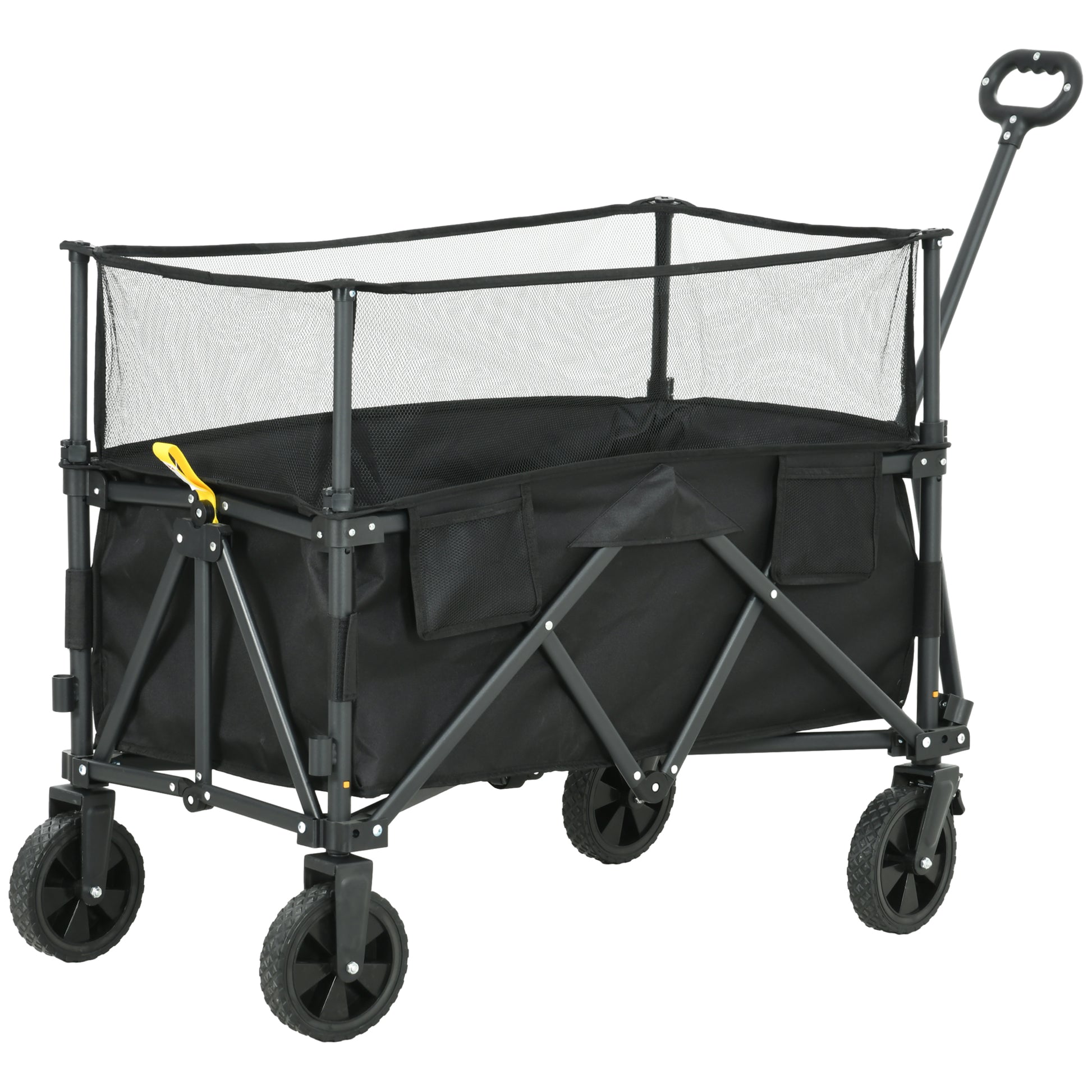 Outsunny Folding Garden Trolley, 180L Wagon Cart with Extendable Side Walls, for Beach, Camping, Festival, Black