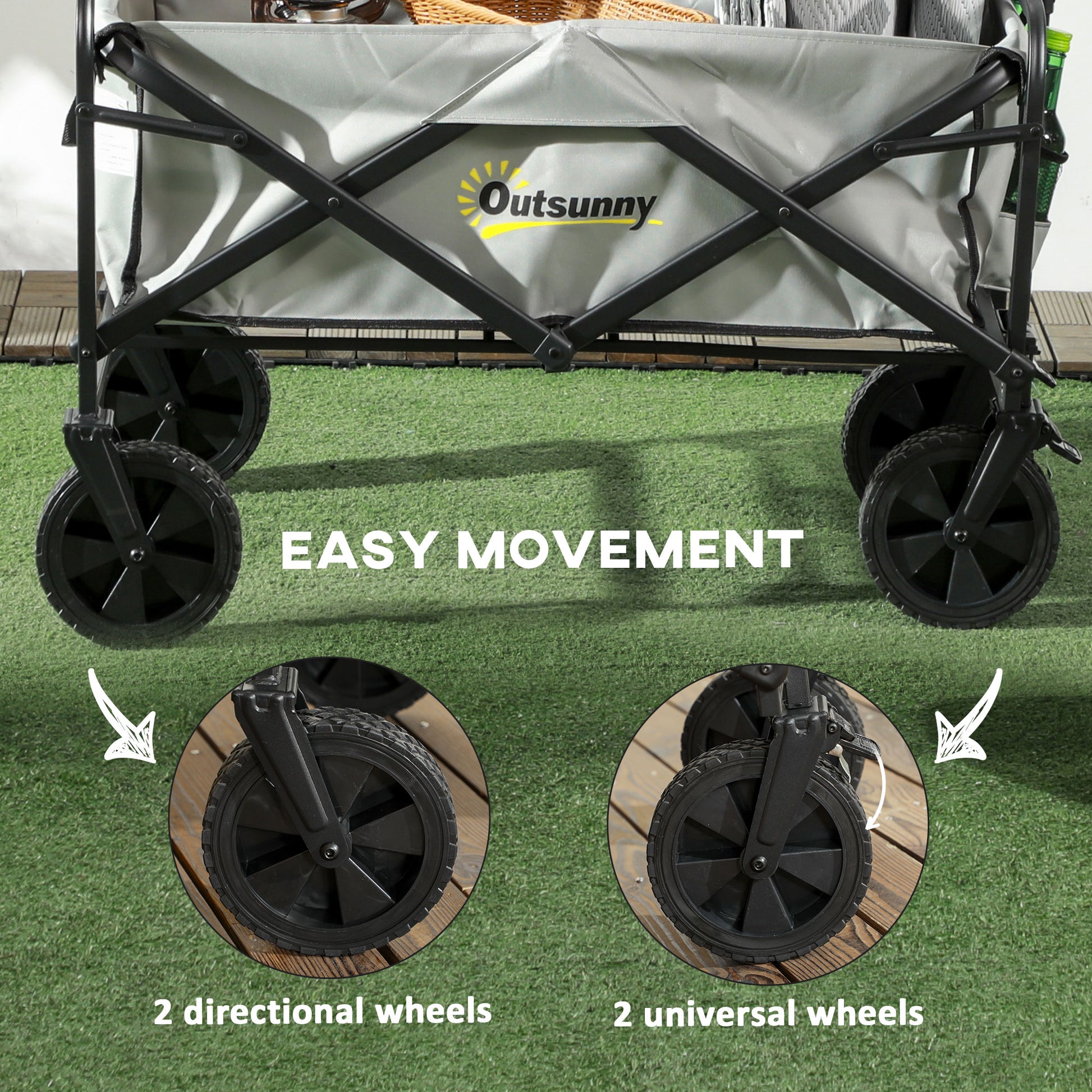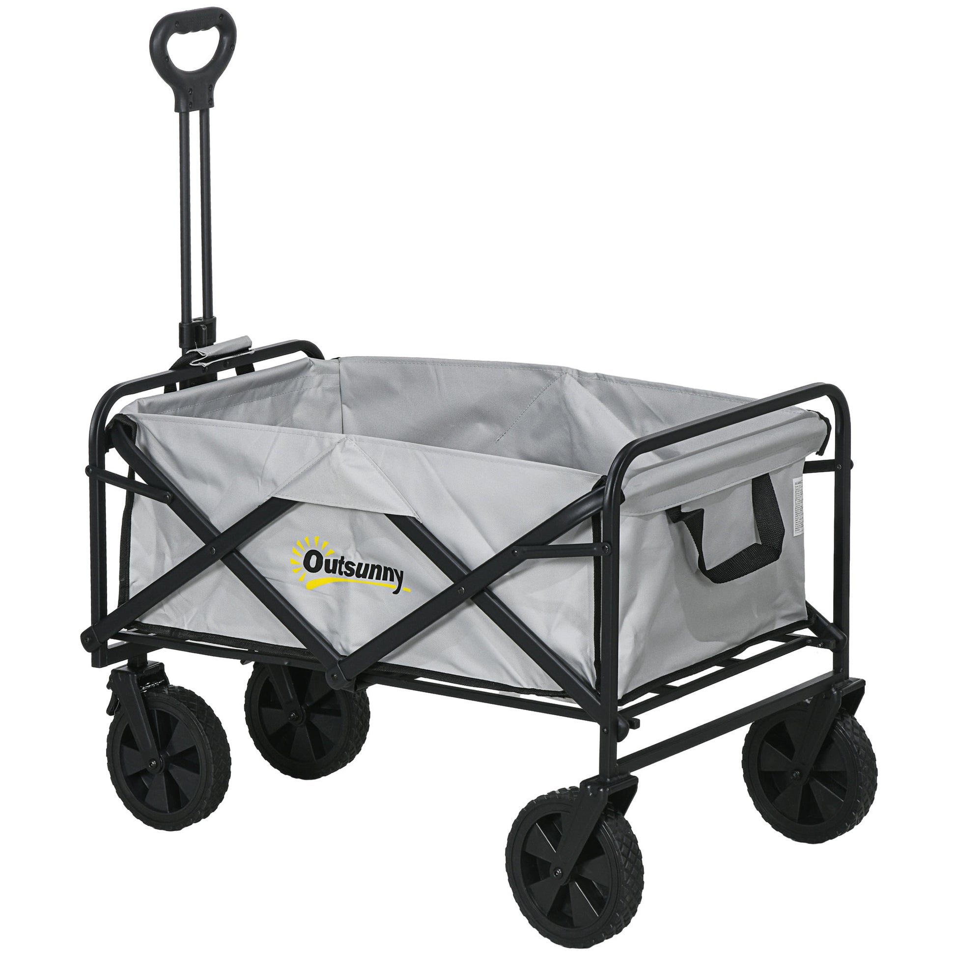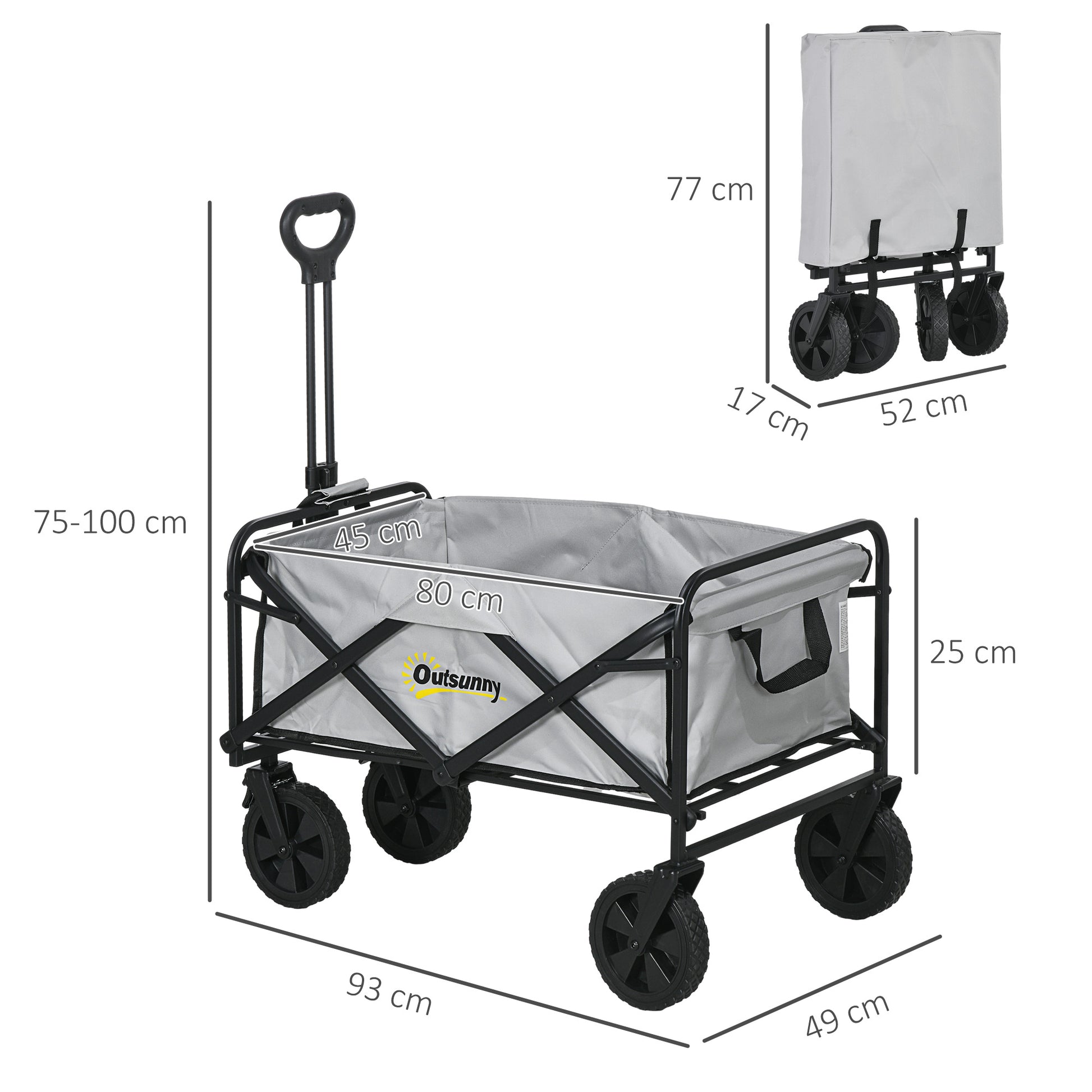 Outsunny Folding Pull Along Cart Cargo Wagon Trolley with Telescopic Handle - Dark Grey