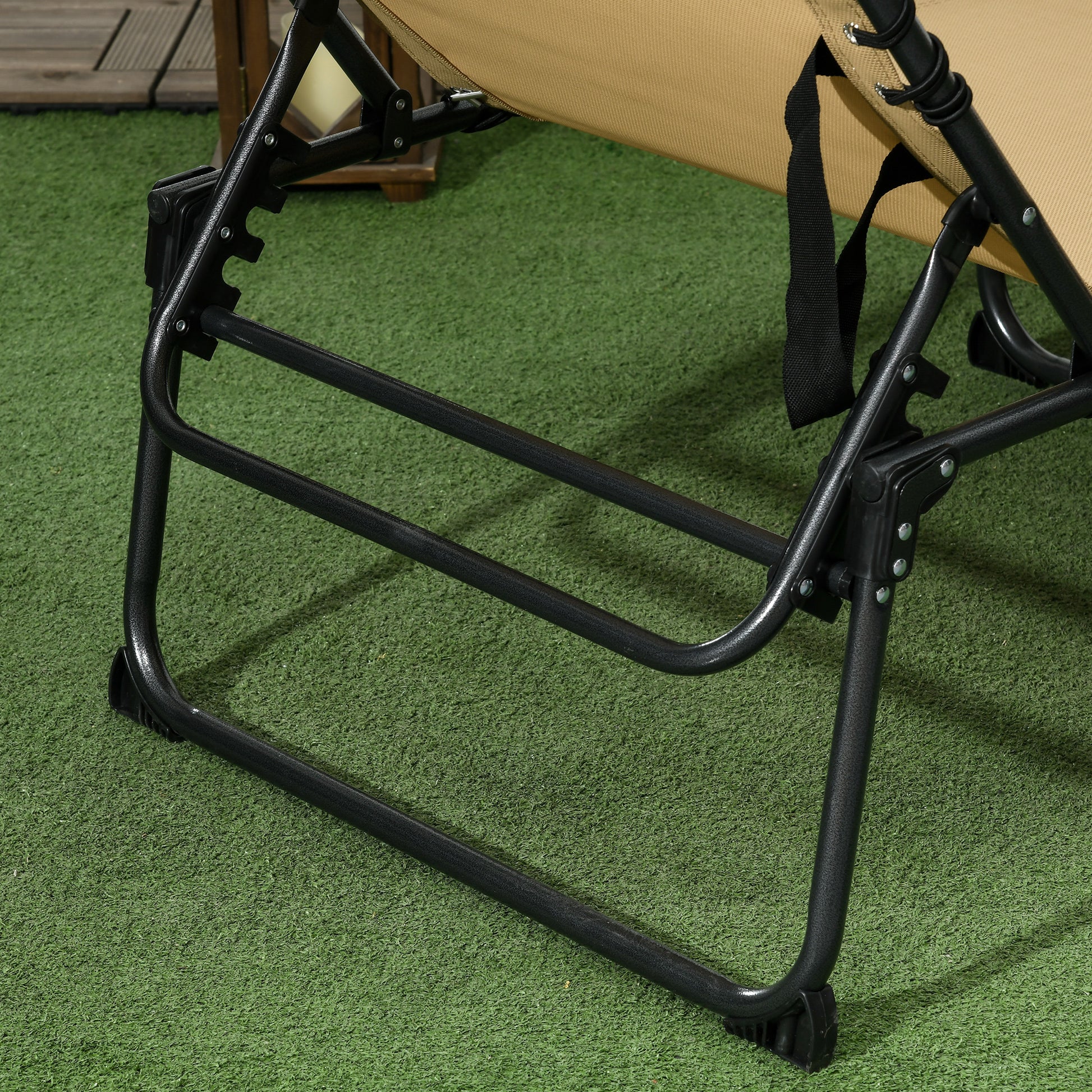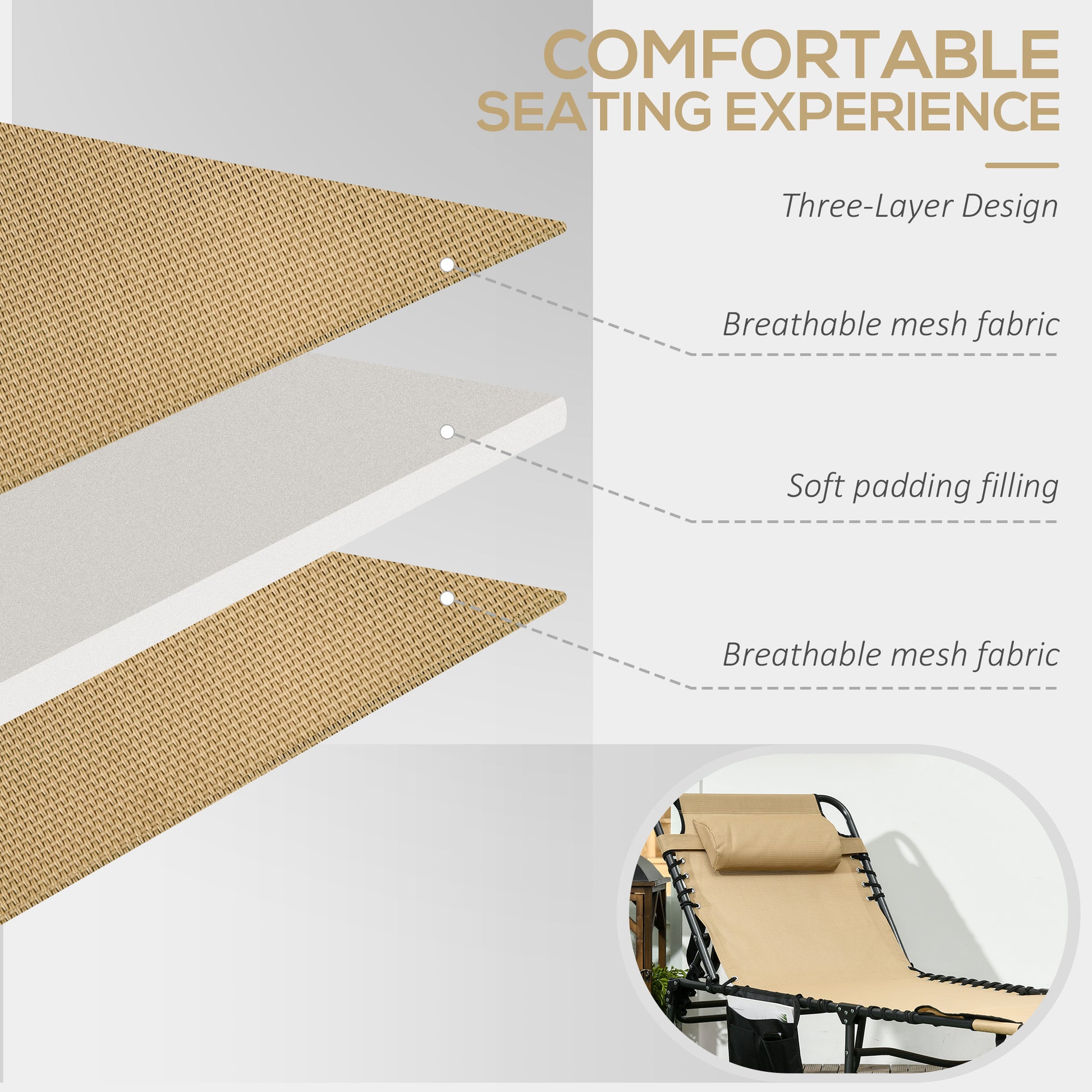 Outsunny Folding Sun Lounge With 5 Level Reclining Back, Tanning Chair With Reading Hole, Lounger with Side Pocket, Headrest - Beige