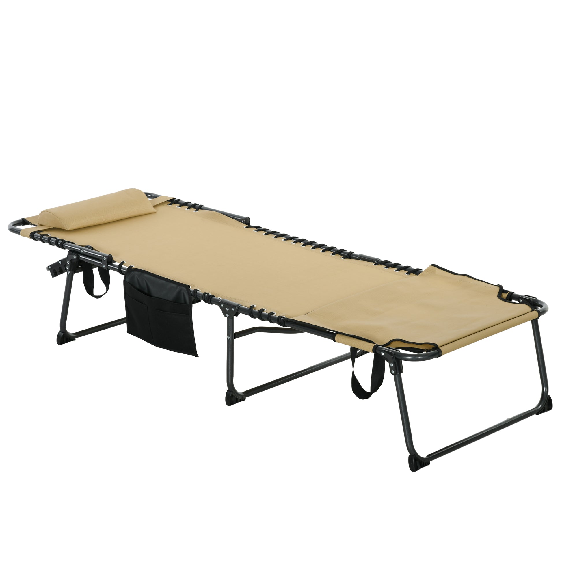 Lay the day away, your way with this Outsunny sun lounger. The powder coated steel frame is a strong structure which supports you as you relax. It can be folded, with the carry handle to move around easily. The back can be set to five different angles: set to a position you want. The fabric seat holds you comfortably in place, complete with a pillow for your head and neck. The reading hole can be used for outdoor reading or covered with a cover fabric.