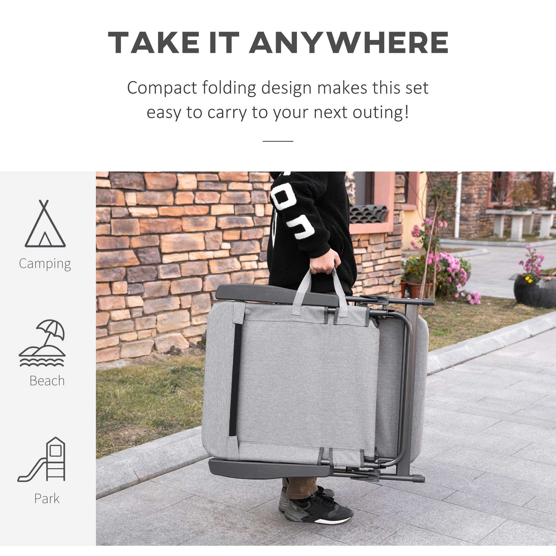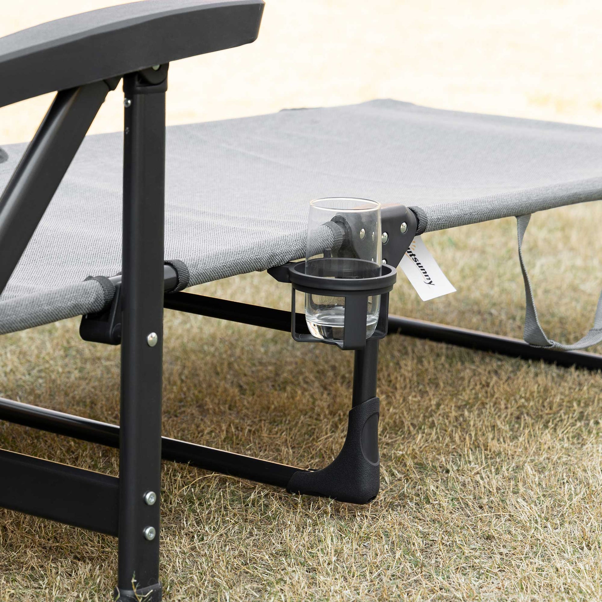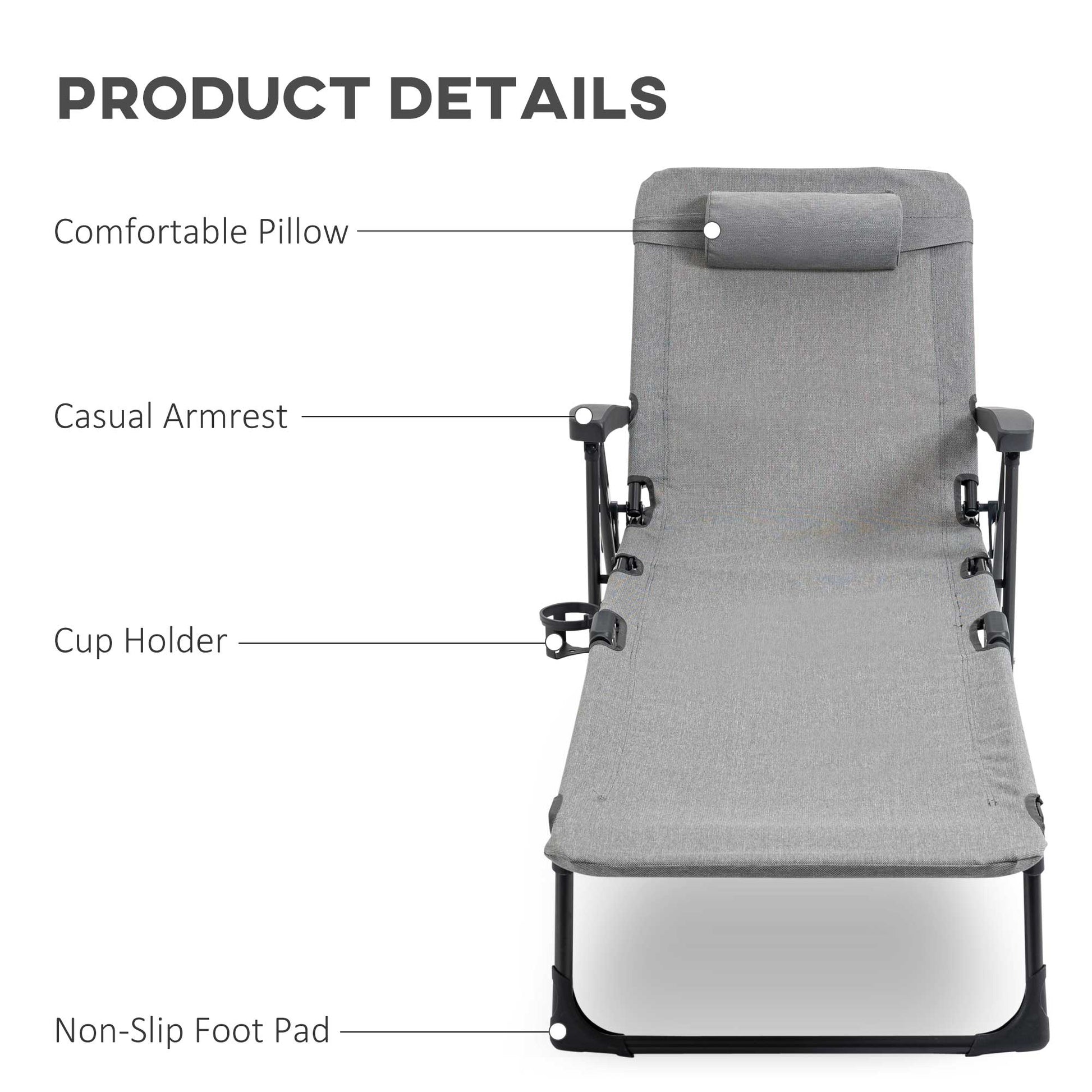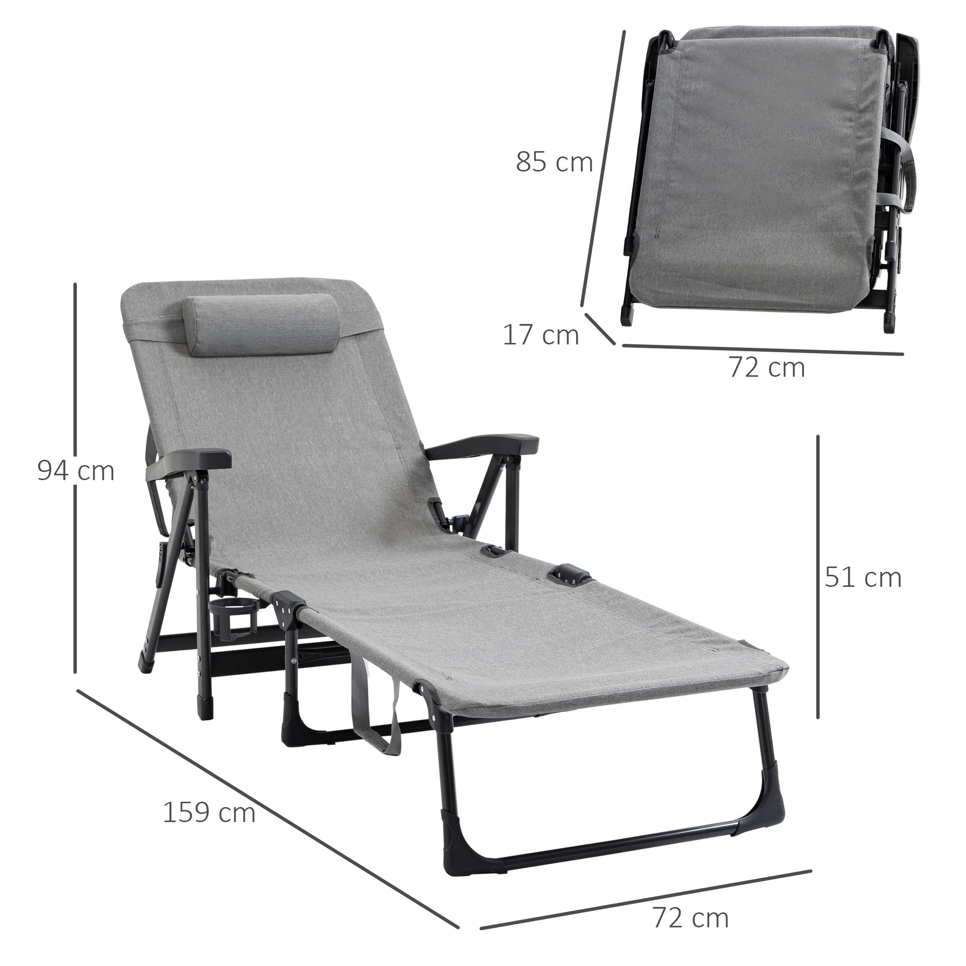 Outsunny Folding Sun Lounger, Mesh Fabric Chaise Lounge Chair, 7-Reclining Position Sleeping Bed W/ Pillow & Cup Holder - Light Grey