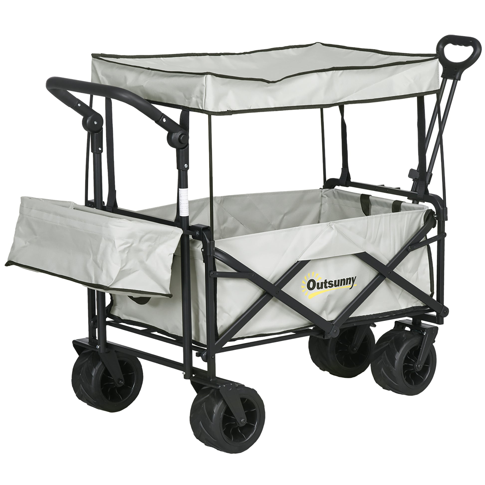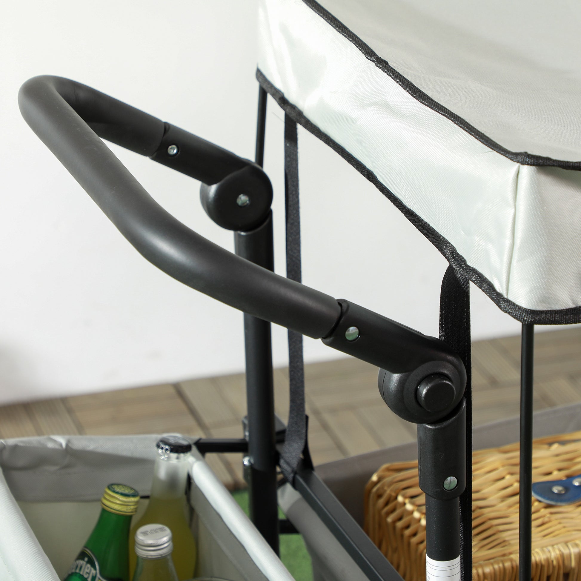 Outsunny Folding Trolley Cart Storage Wagon Beach Trailer 4 Wheels with Handle Overhead Canopy Cart Push Pull for Camping, Grey