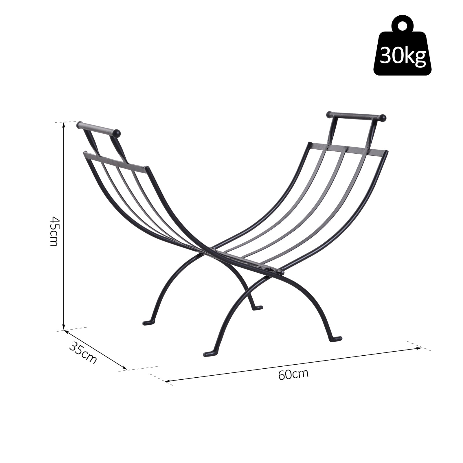 Outsunny Folding Wood Log Holder Fireplace Storage Rack Matte Metal Elevated Indoor Outdoor 45x35cm Black