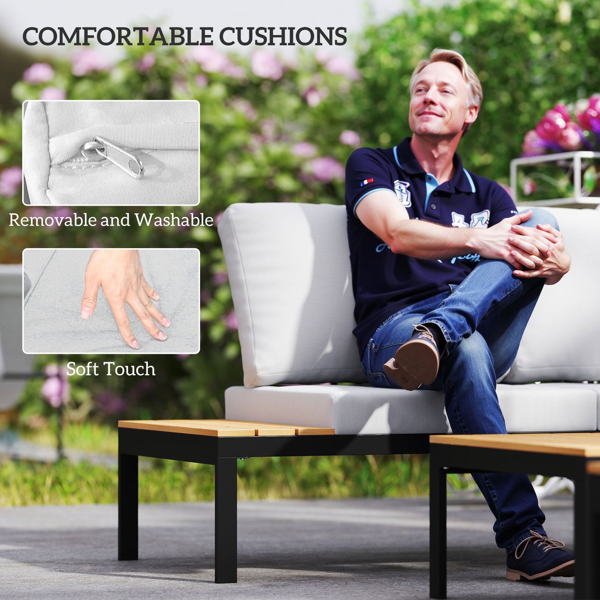 - Soft cushions provide comfort with removable covers for washable