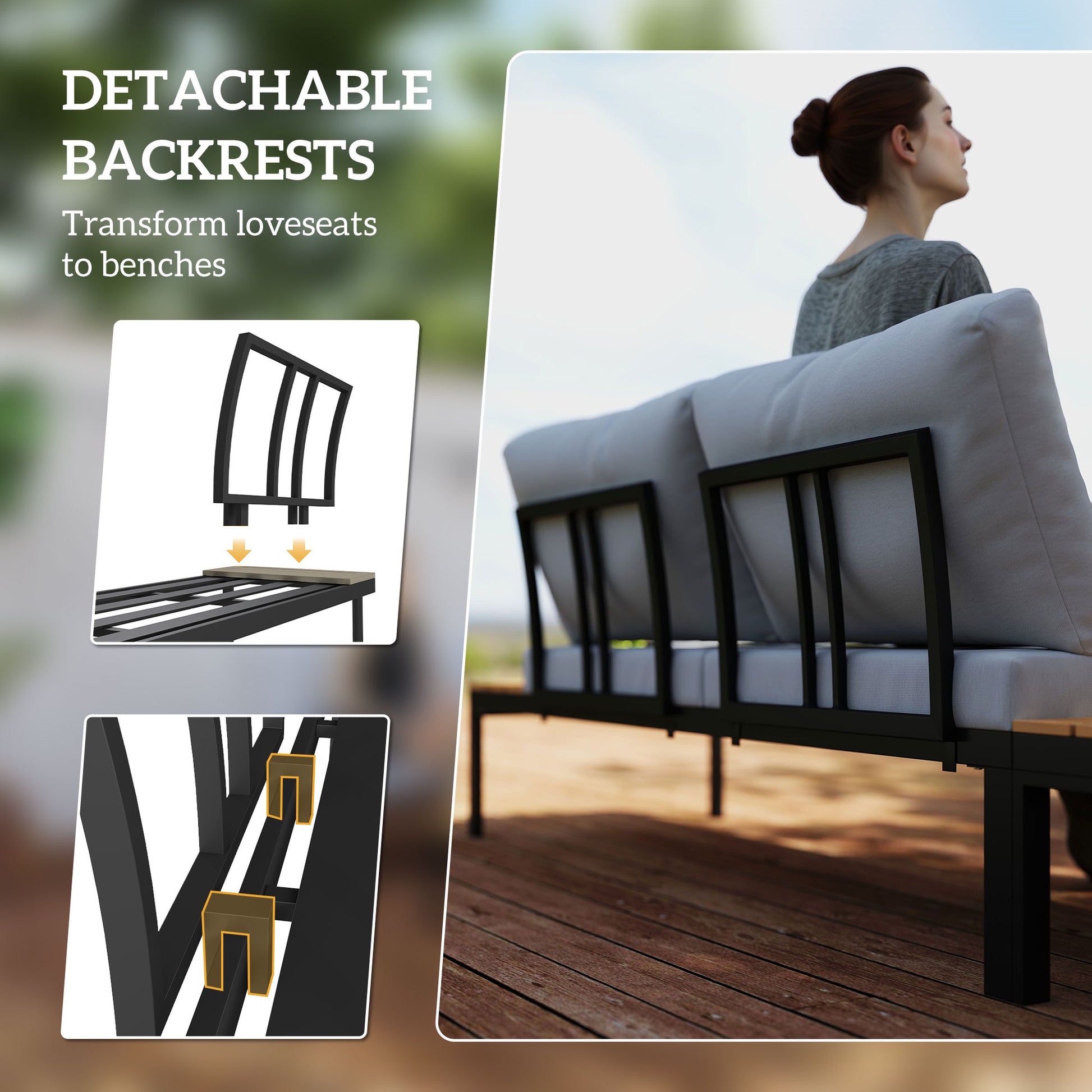 - Remove the backrest of loveseats and convert into benches