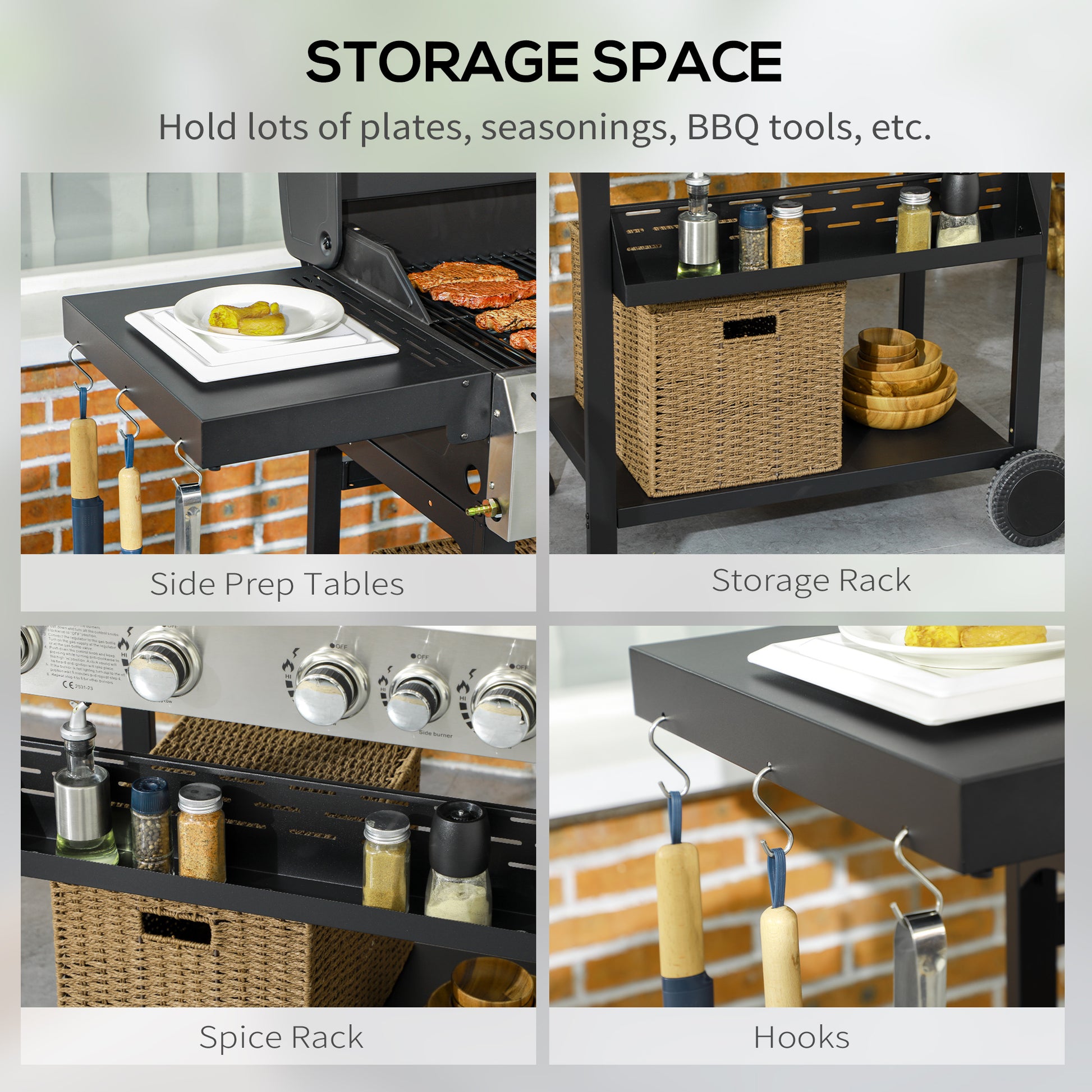 Outsunny Galvanised Steel 4+1 Gas Burner BBQ Grill Trolley, Black