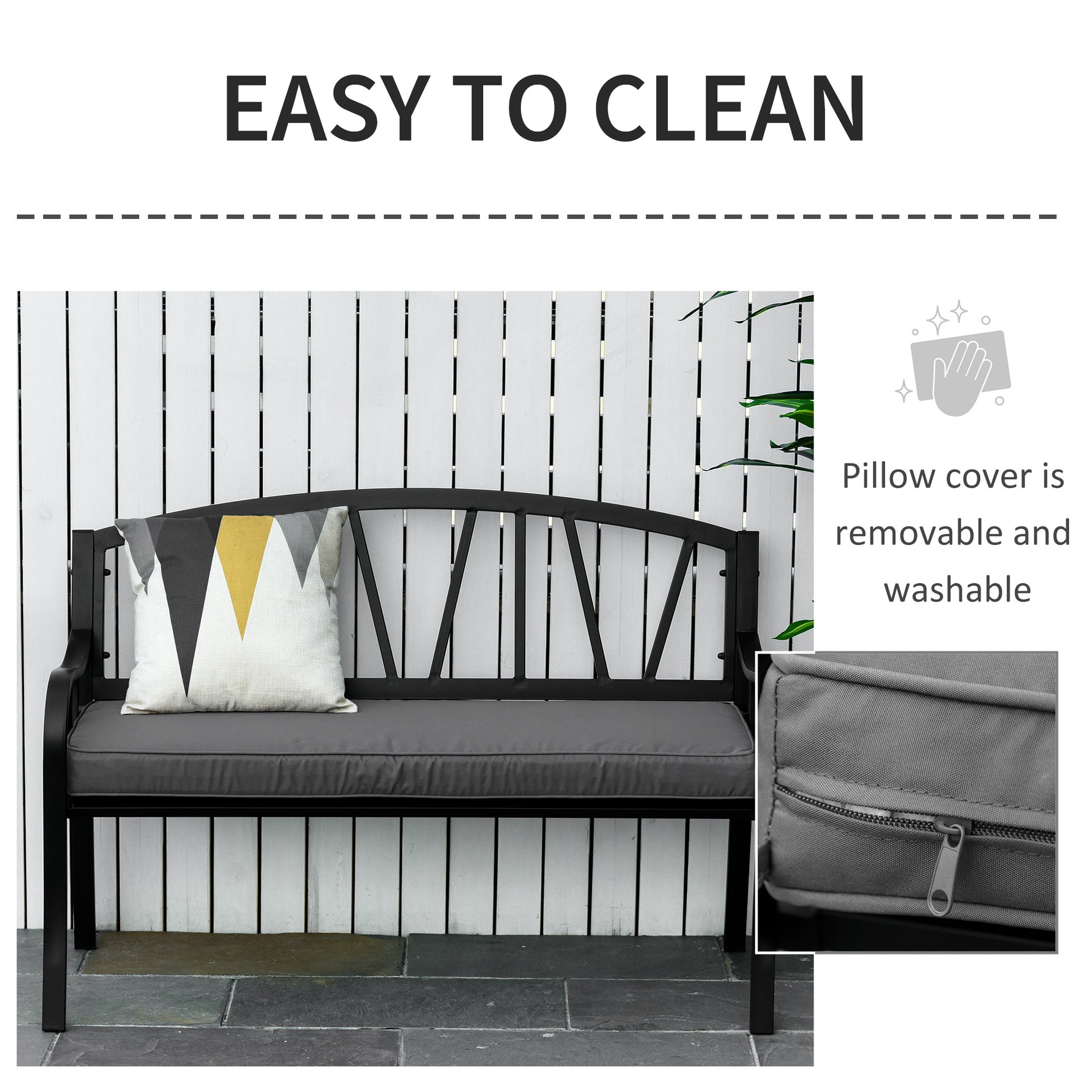 Make hours of uncomfortable sitting outdoors a thing of the past: go for this bench cushion from Outsunny. Made from polyester to ensure it is tough and resistant against water and light stains, the cover is made to a 120cm x 50cm size, making it a perfect fit for two-seater benches. It's filled with thick sponge filling for comfort and finished with two tie fastenings on the top corners to attach safely.