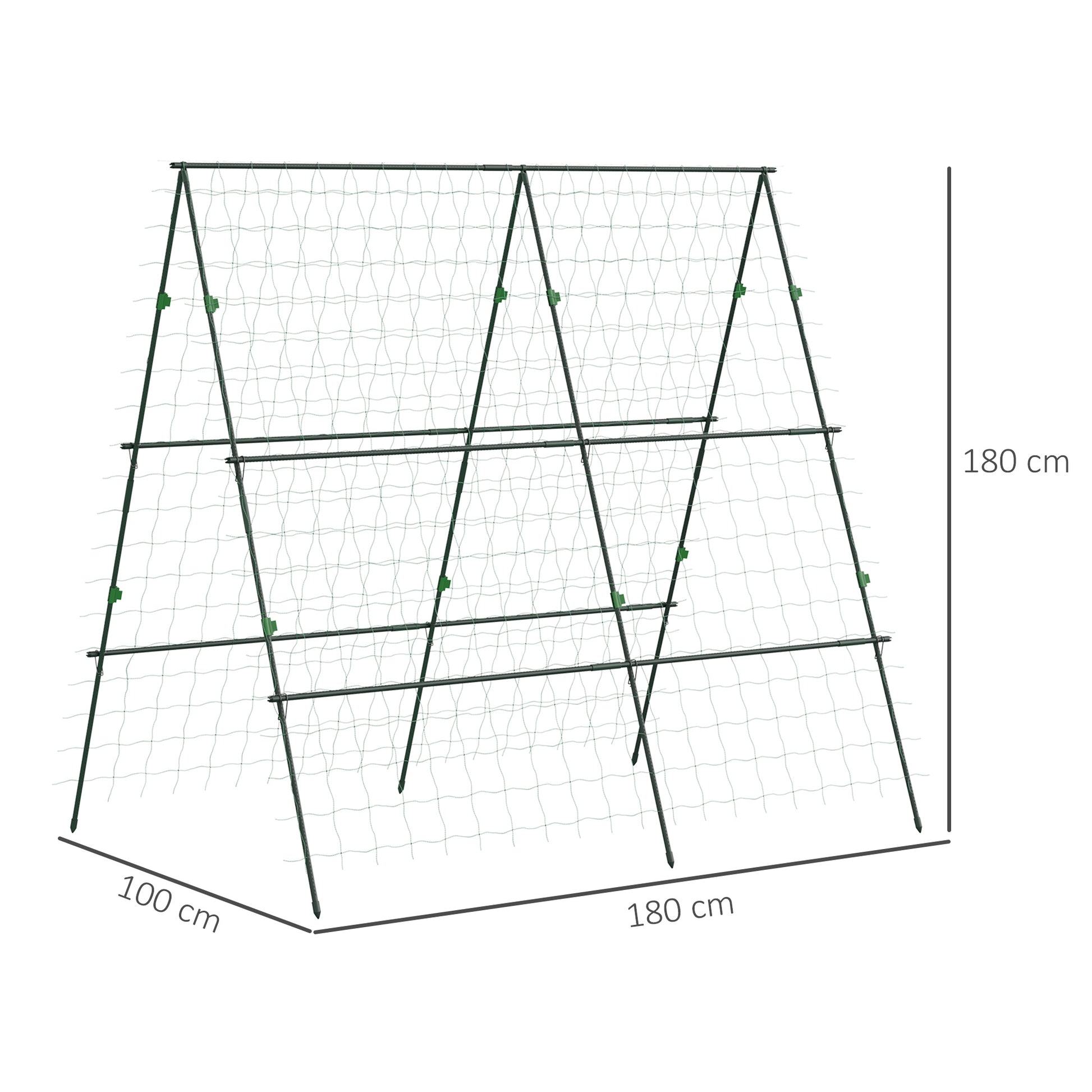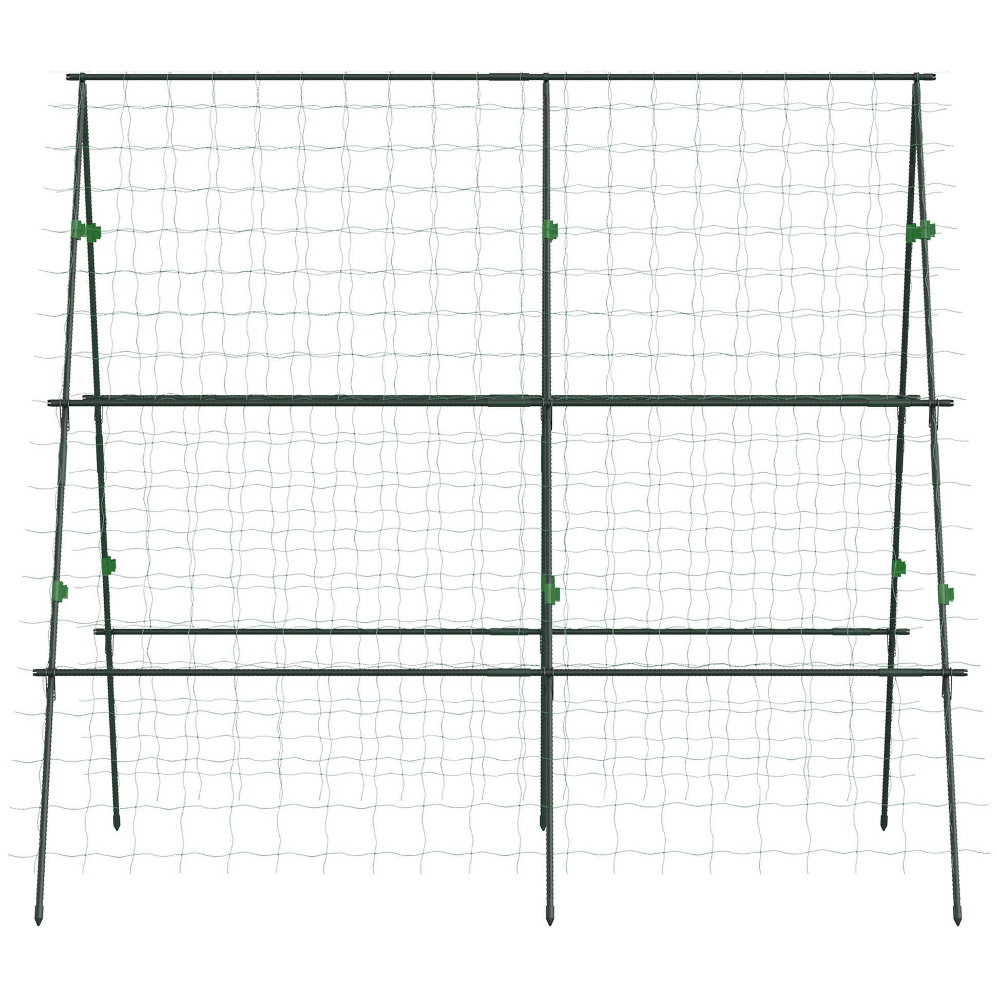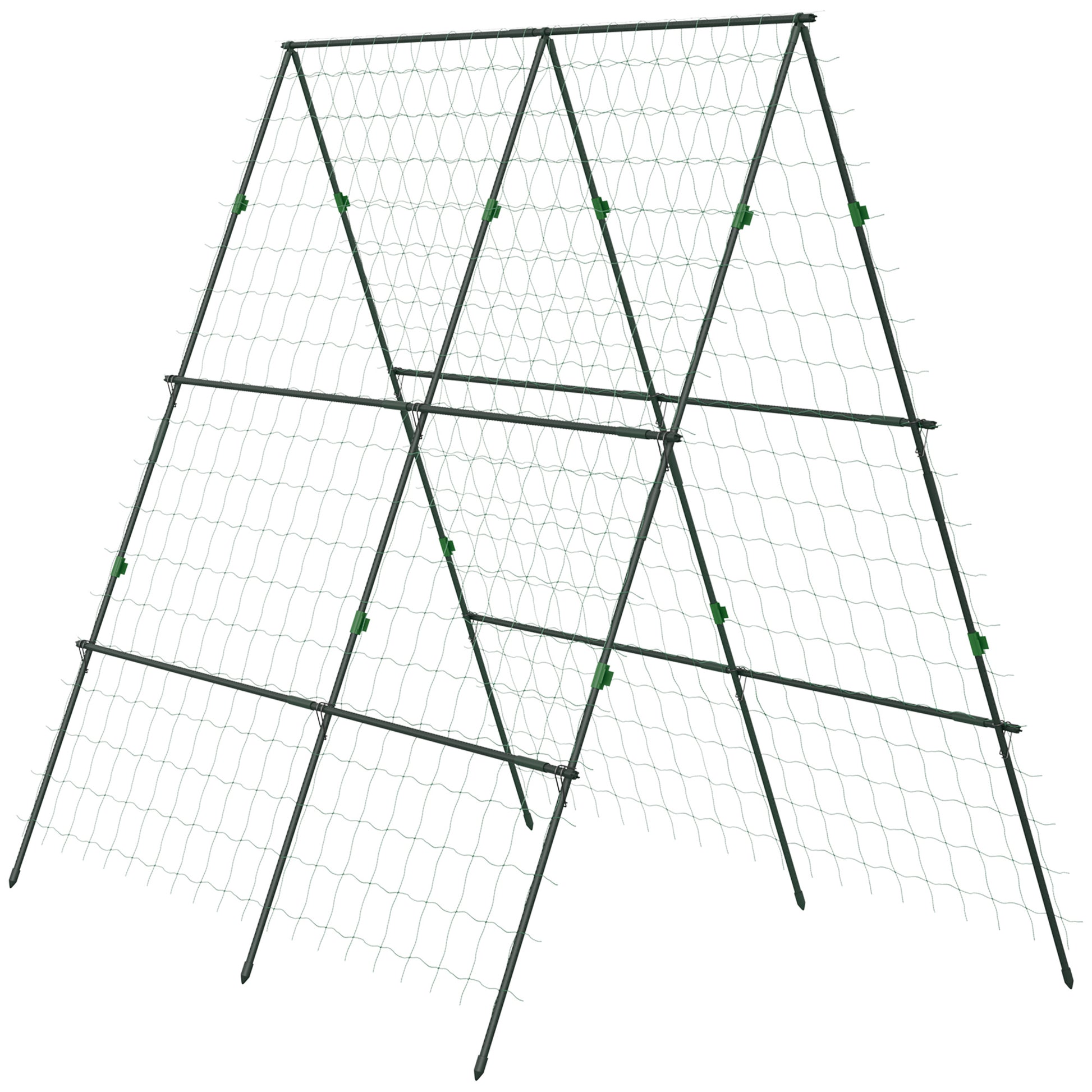 Outsunny Garden Cucumber Trellis for Climbing Plants, A-Frame Trellis Plant Support with Climbing Net, DIY Adjustable Cucumber Support Frame for Raised Bed, Vegetables, Flowers, Fruit, Green