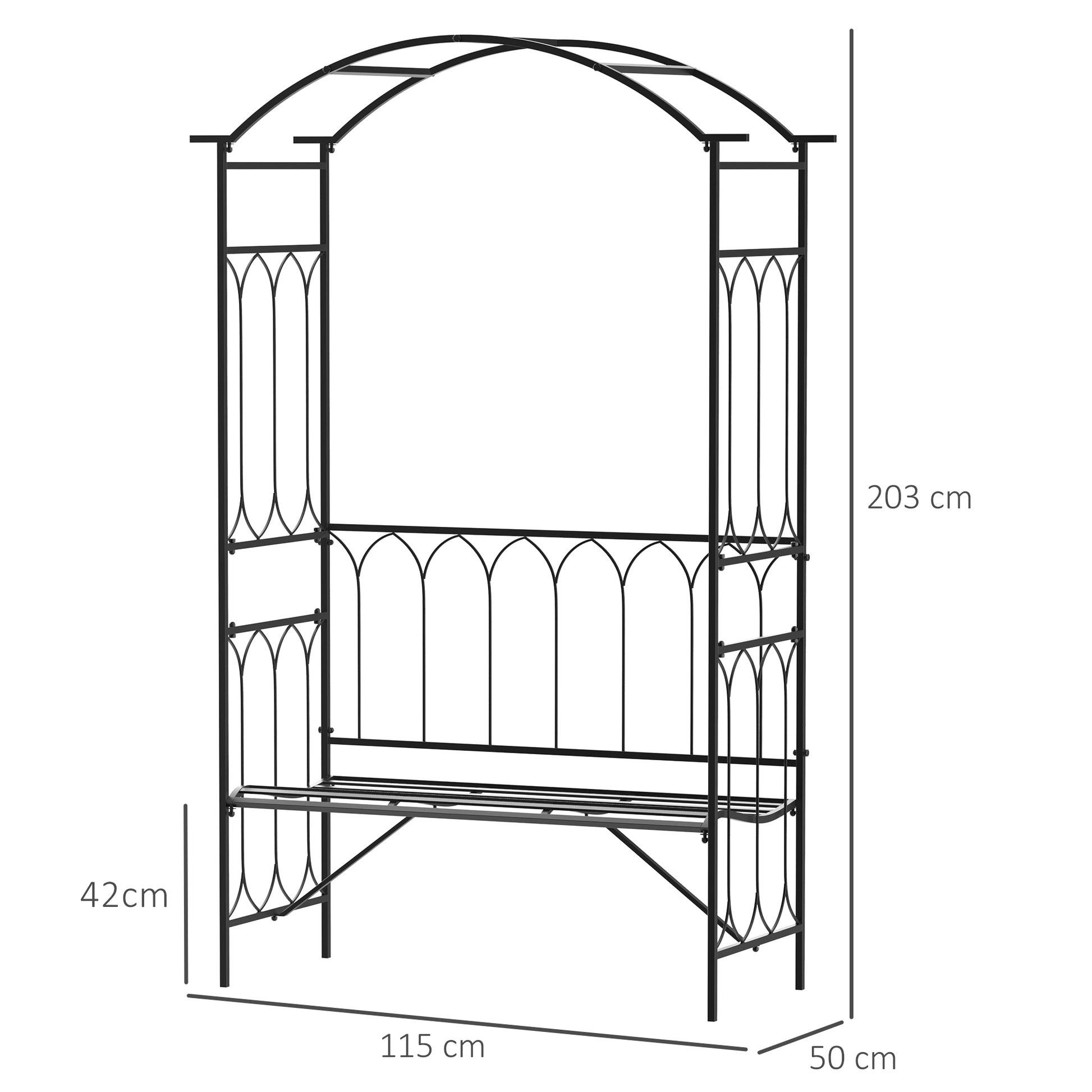 Outsunny Garden Metal Arch Bench Outdoor 2-Seater Chair, Patio Rose Trellis Arbour Pergola for Climbing Plant Vintage Classic Black 115x50x203H cm