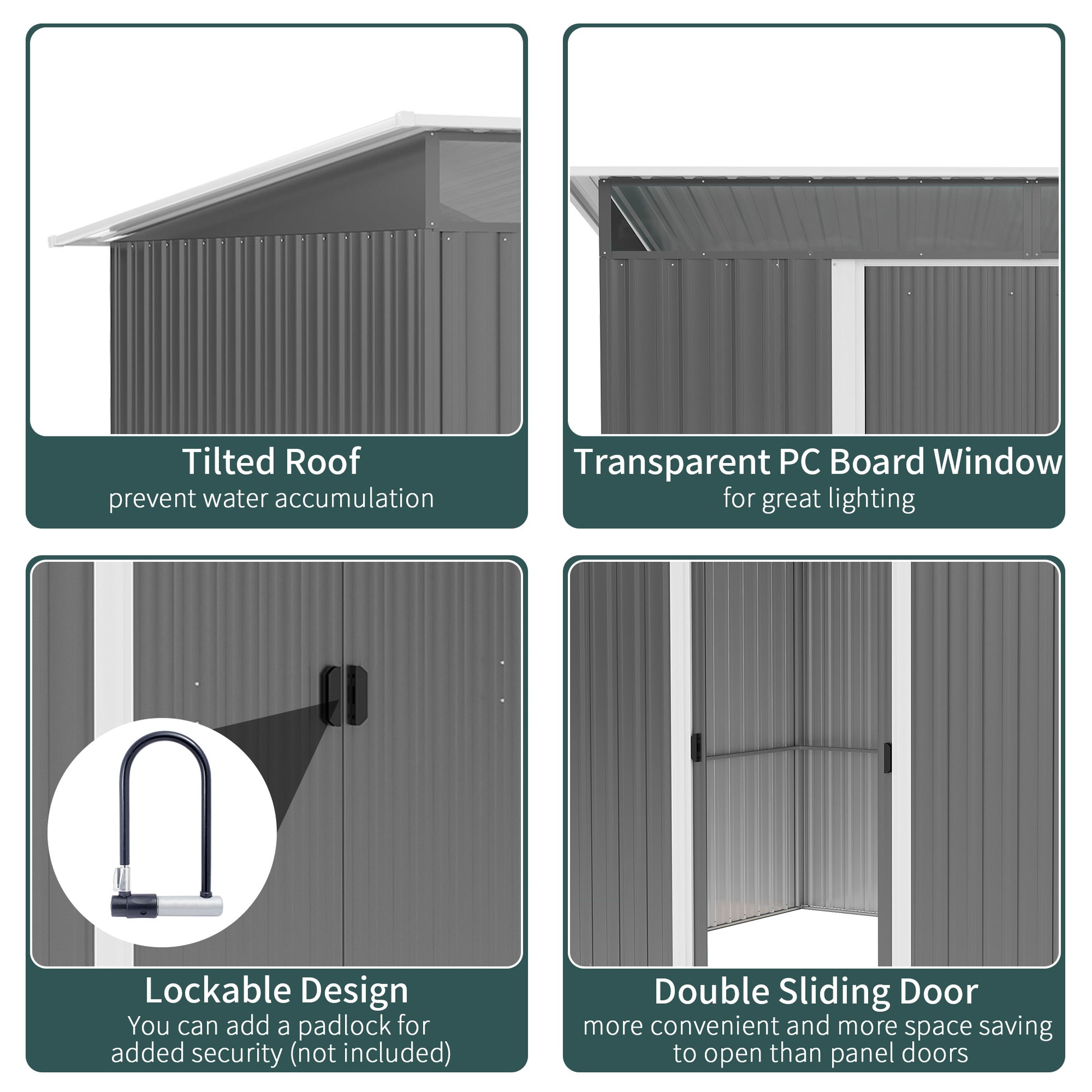 Outsunny Garden Metal Storage Shed House Hut Gardening Tool Storage w/ Tilted Roof and Ventilation 9 x 6ft, Grey