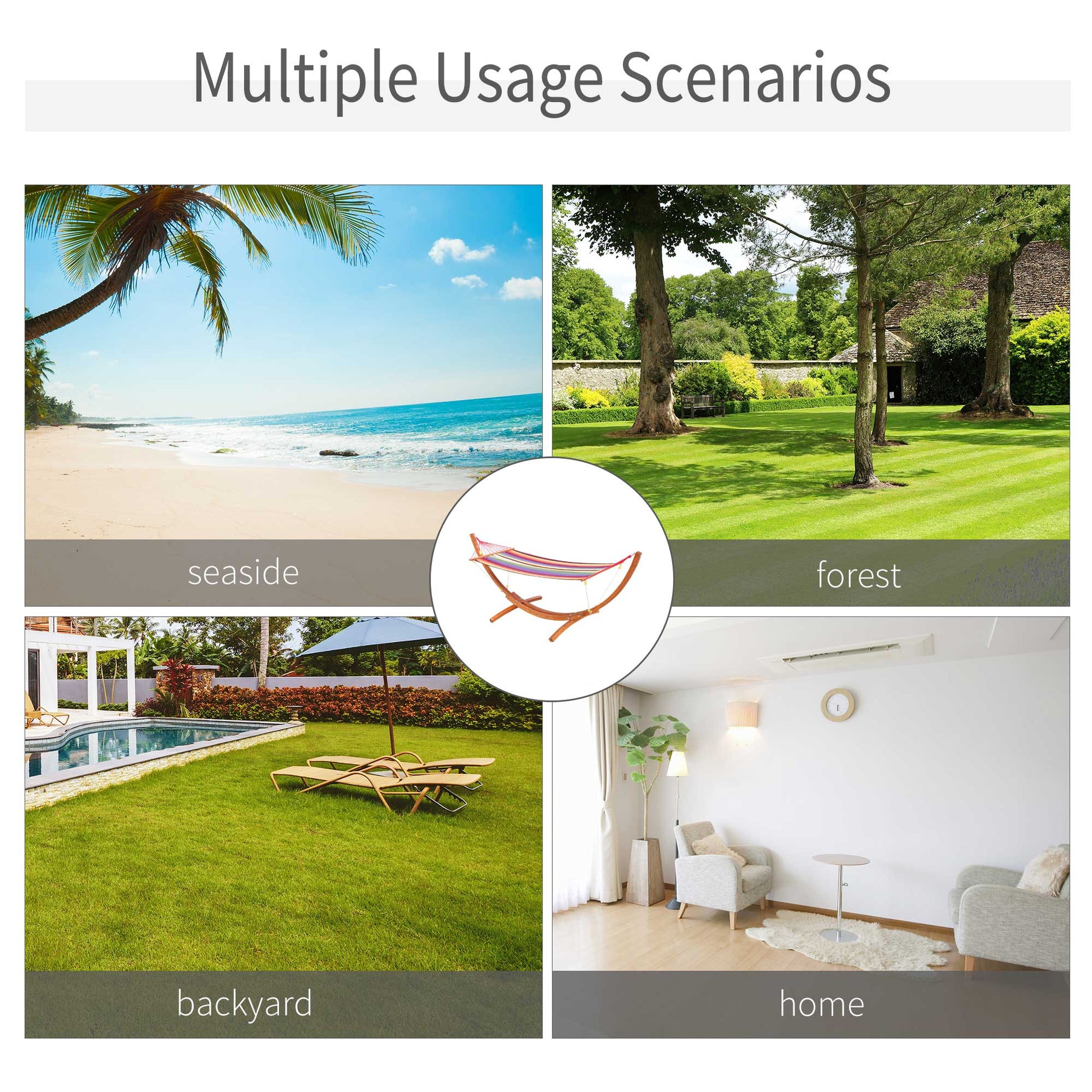 Outsunny Garden Outdoor Patio Standing Frame Wooden Hammock with Arc Stand - Multi-Colour