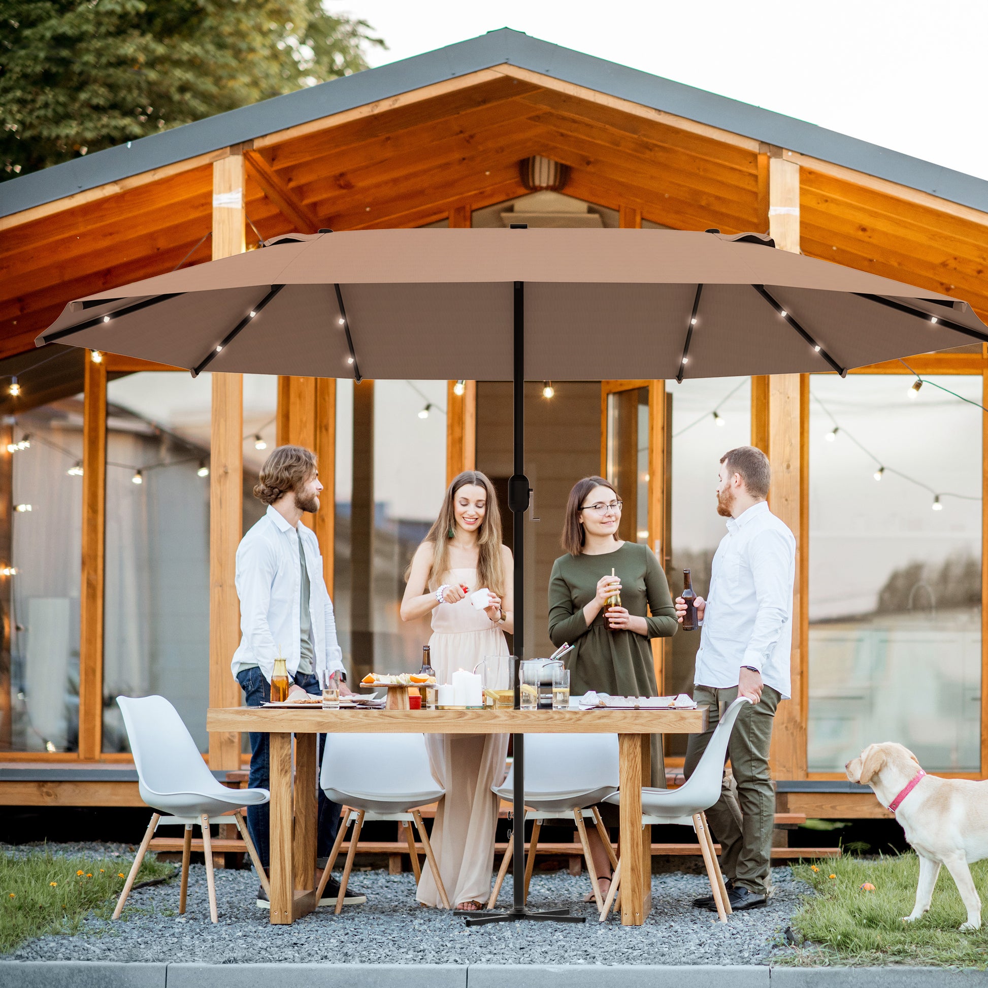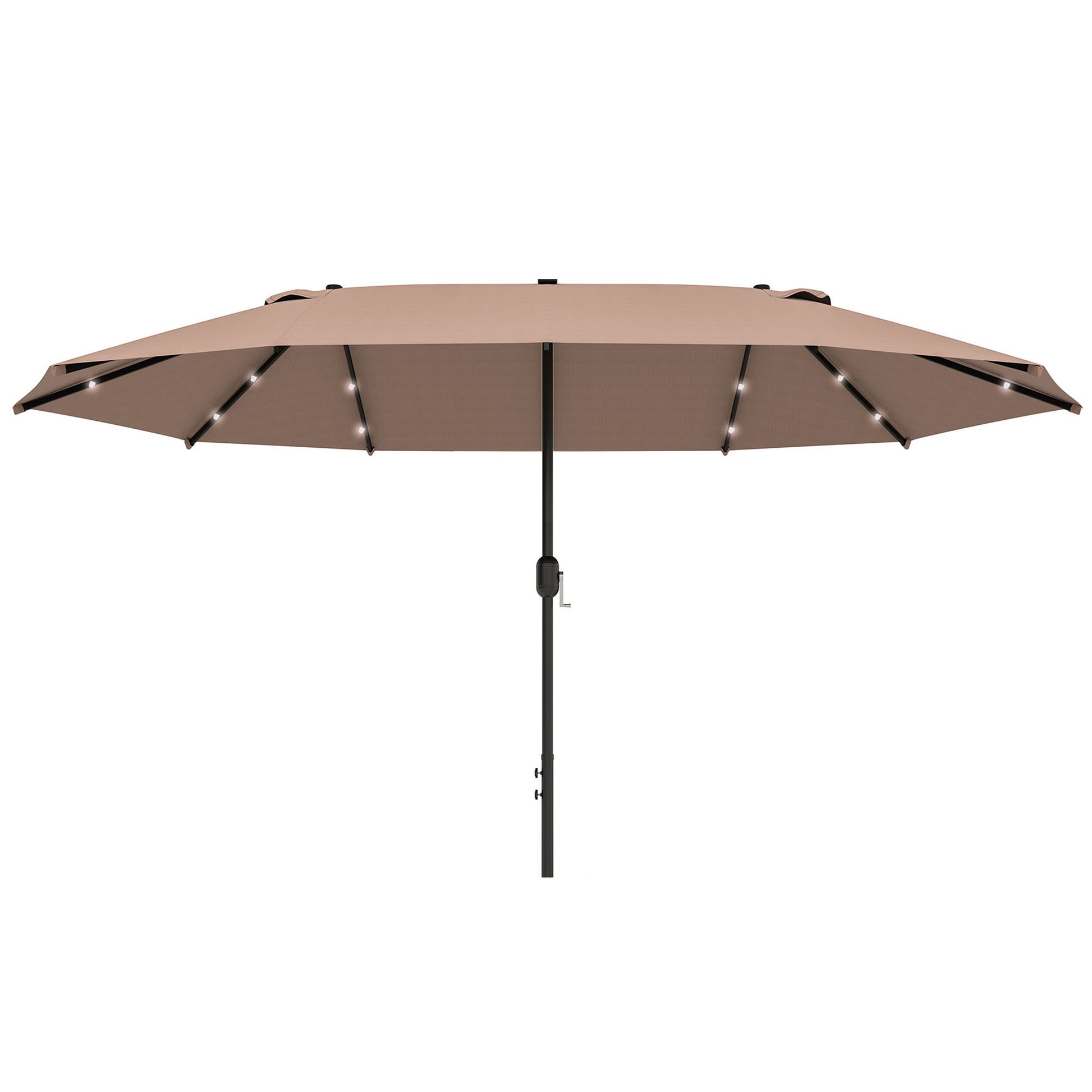 Outsunny Garden Parasol 4.4m Double-Sided Sun Umbrella Patio Sun Shade Outdoor with LED Solar Light , Khaki