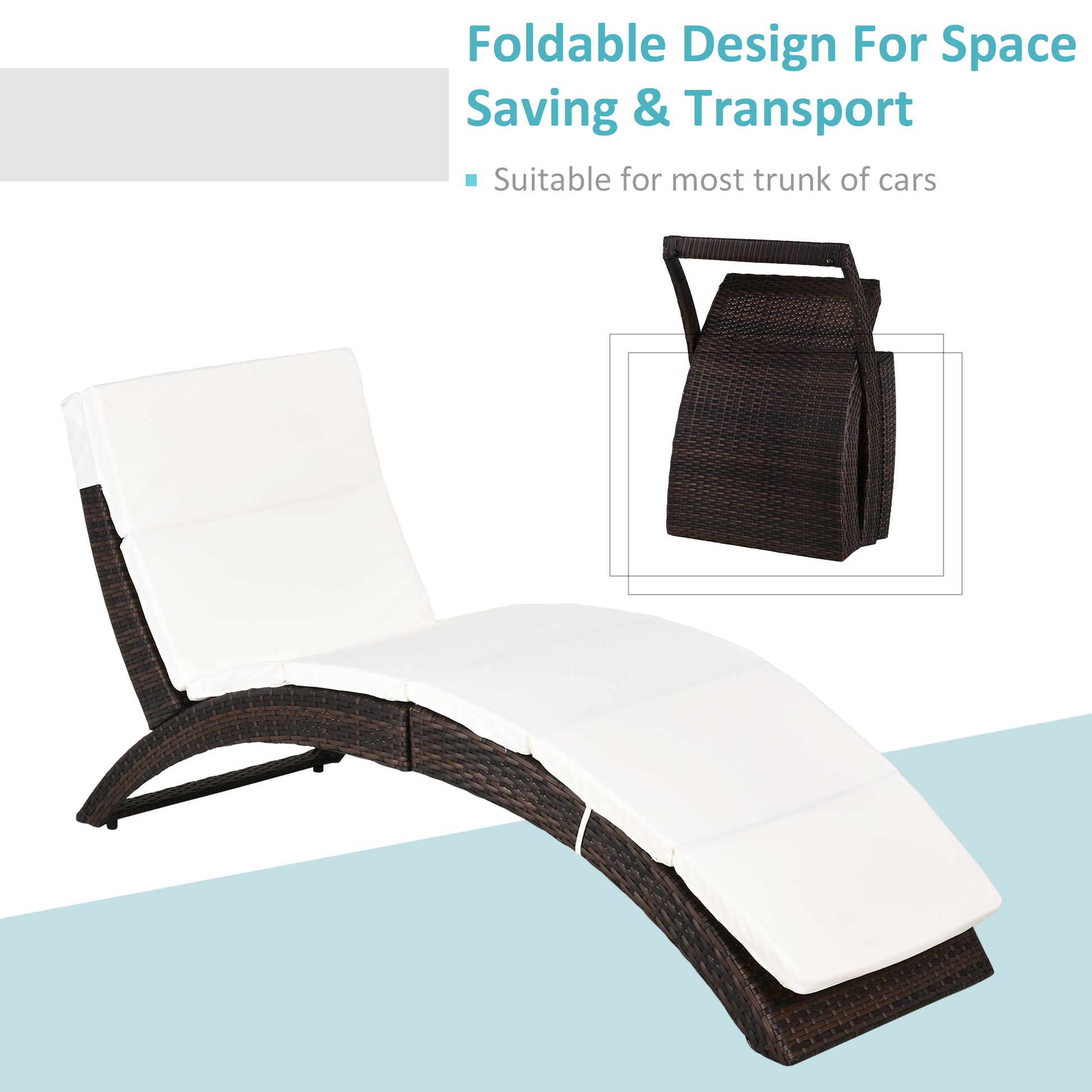 Outsunny Garden Patio Rattan Wicker Folding Sun Lounger Recliner Bed Chair with Cushion for Outdoor, Mixed Brown, White