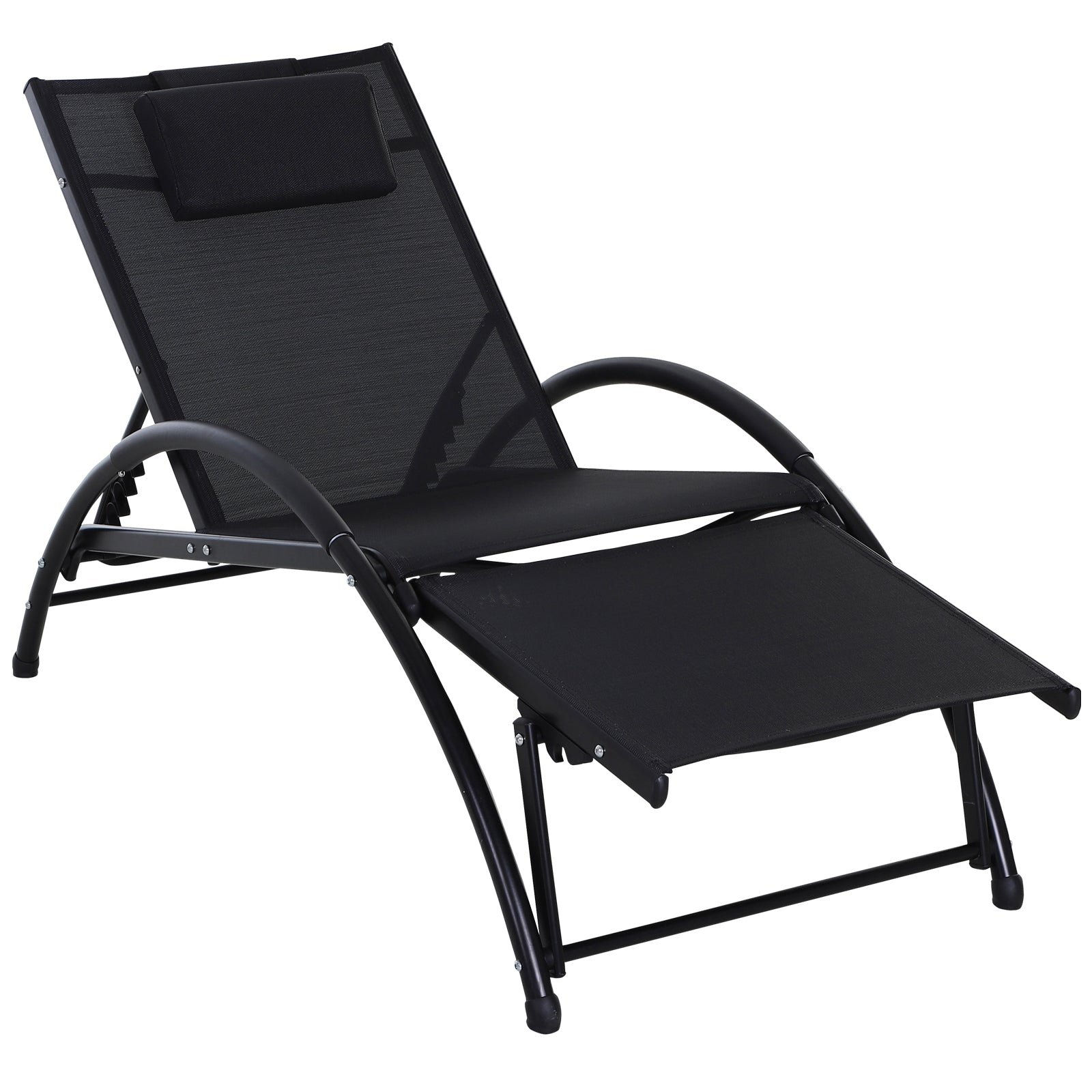 Outsunny Garden Patio Sun Lounger Half Circle Armrest Adjustable Head Footrest Aluminium Frame Textline Seat &Pillow Garden Outdoor - Black