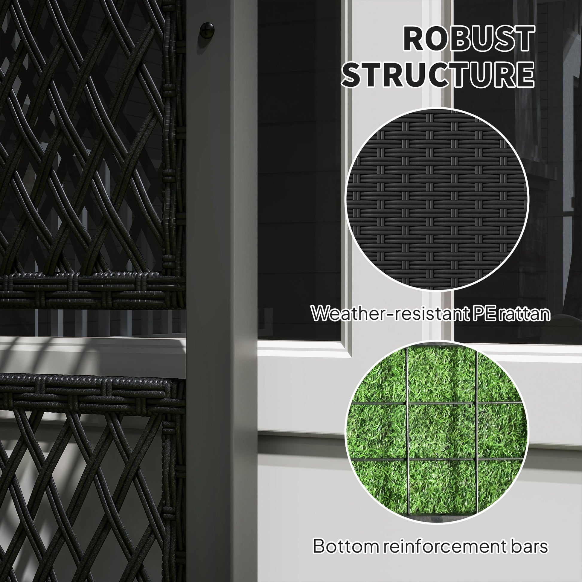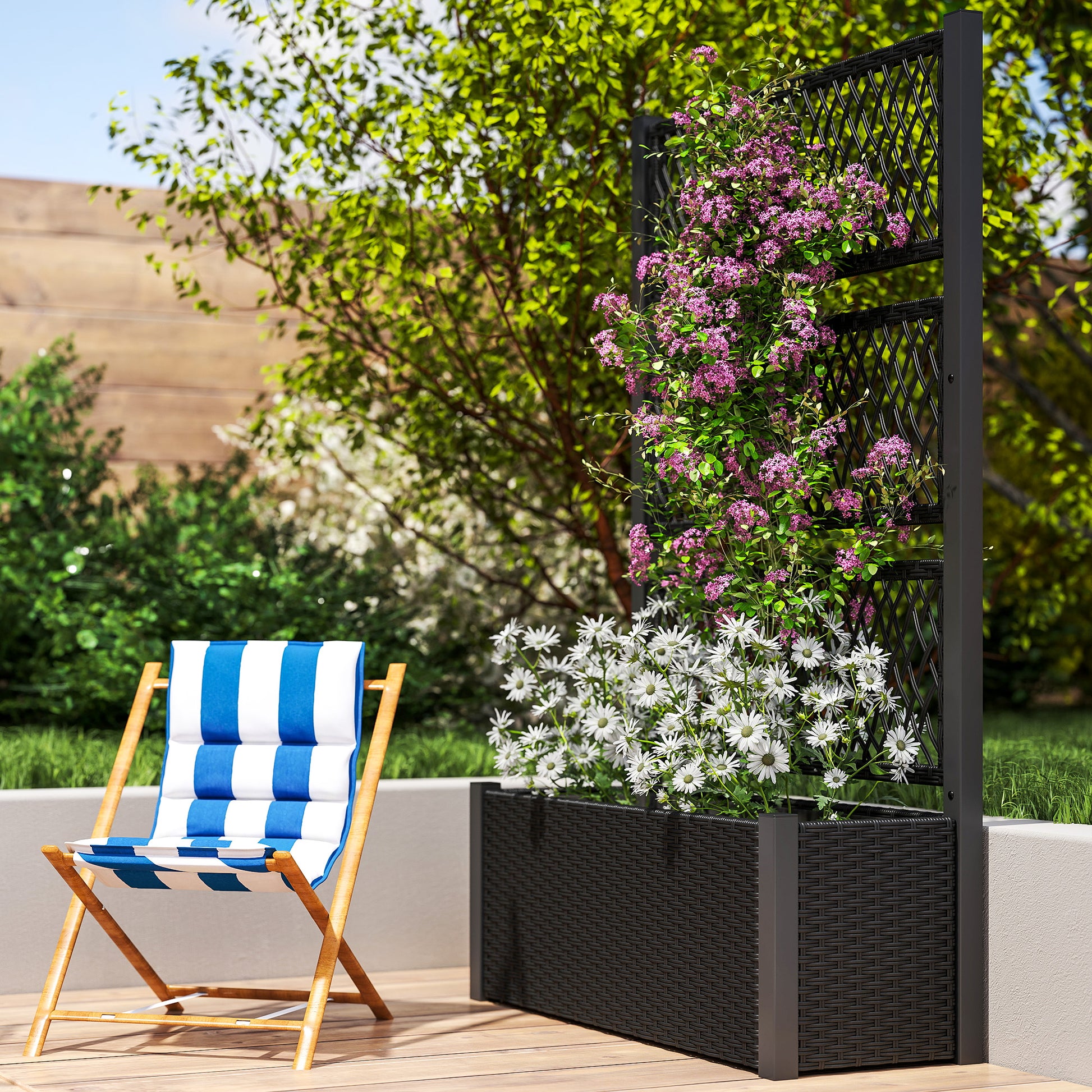 Discover the charm of the Outsunny planter with trellis, blending functionality with style. This raised garden bed features a built-in trellis, suitable for supporting climbing plants and a spacious lower box for a variety of greenery. Crafted from weather-resistant PE rattan and steel, it promises enduring elegance and ease of maintenance in any garden setting.
