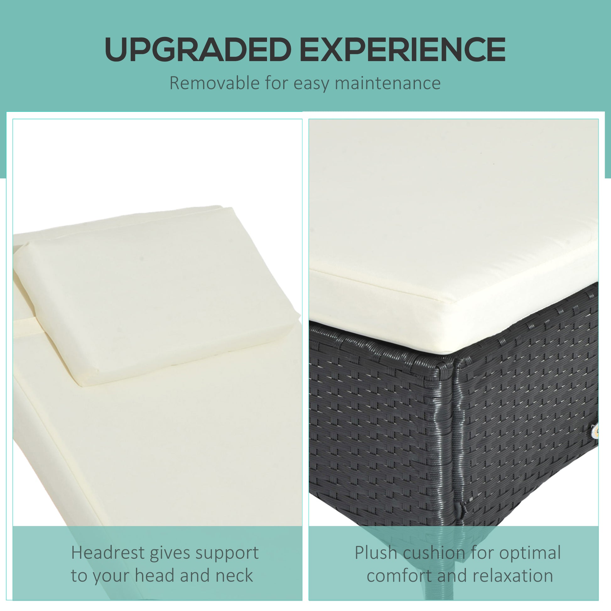 Outsunny Garden Rattan Furniture Single Sun Lounger Recliner Bed Reclining Chair Patio Outdoor Wicker Weave Adjustable Headrest - Black