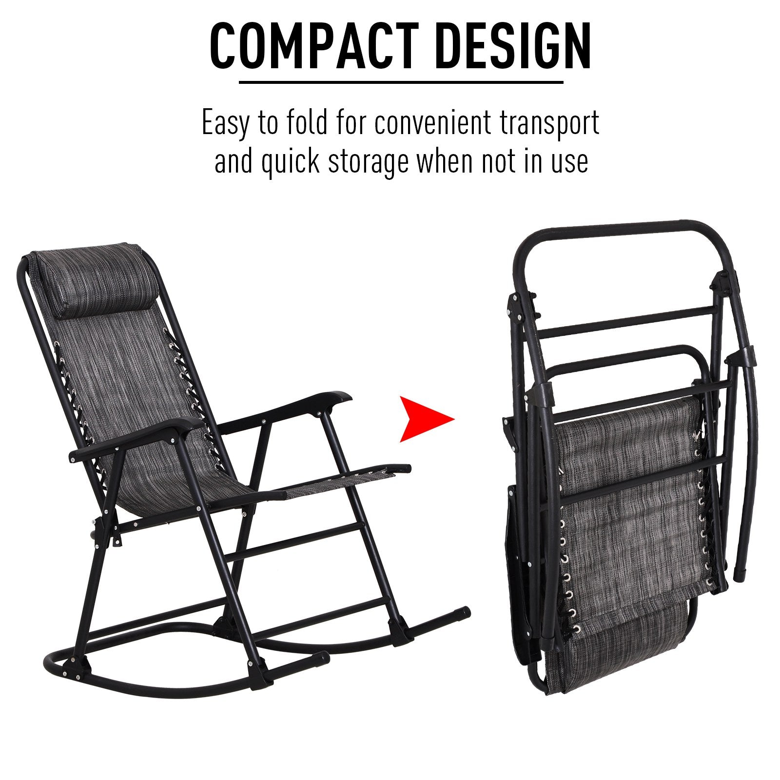 Outsunny Garden Rocking Chair Folding Outdoor Adjustable Rocker Zero-Gravity Seat with Headrest Camping Fishing Patio Deck - Grey