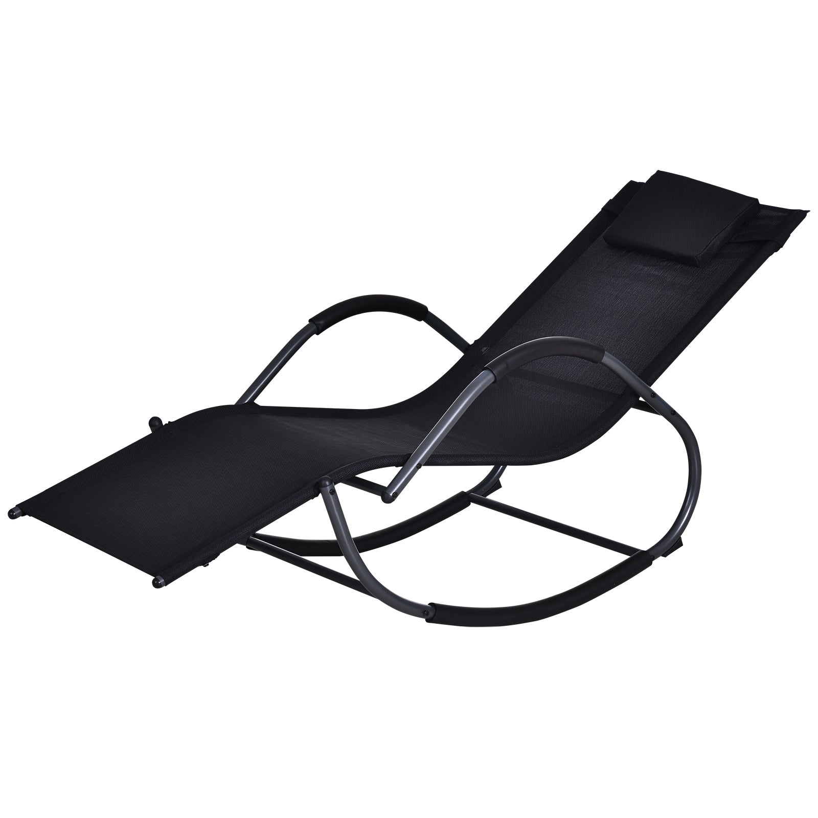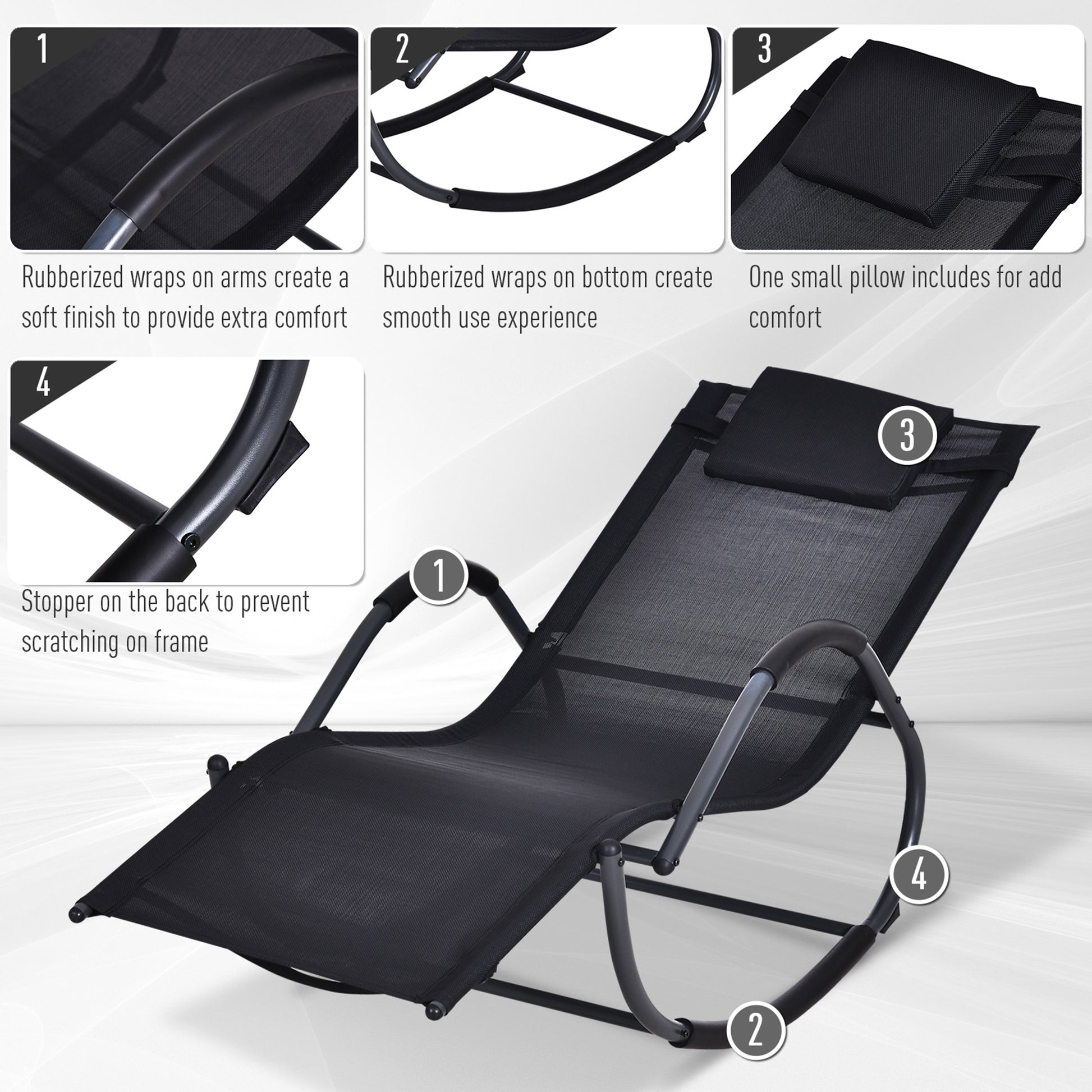 Outsunny Garden Rocking Chair Patio Texteline Rocking Lounge Chair Zero Gravity Rocker Outdoor Patio Garden Recliner Seat w/ Padded Pillow - Black