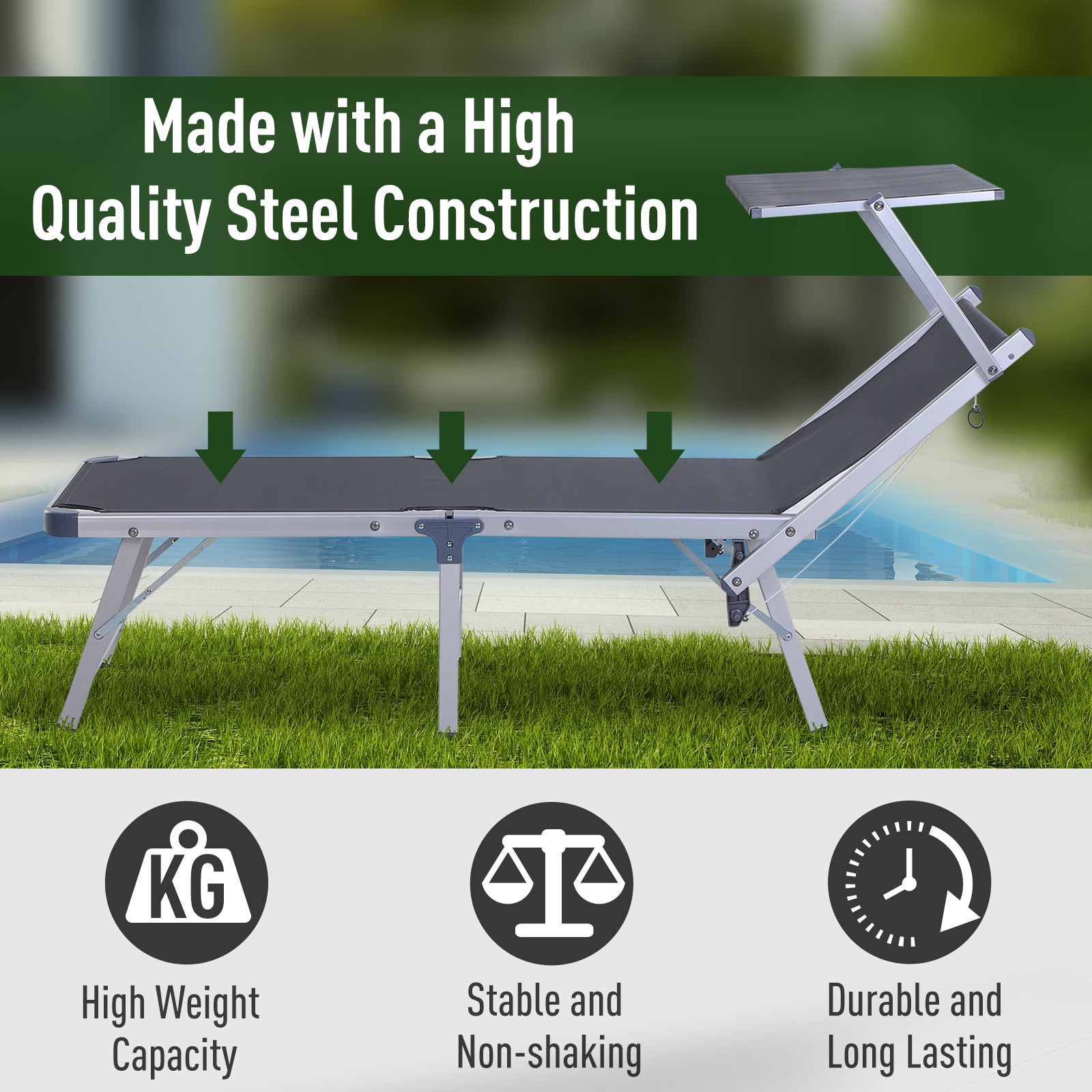 Keep yourself fully protected whilst sunbathing outdoors with this sun lounger from Outsunny. A simplistic design, it blends together a classic lounger with an overhead canopy, safely shielding your face effectively from the sun. Reclining to two levels, you are able to pick a back angle which suits best, whilst a rope connected to the top shape allows you to secure it to a position which protects – meaning you won’t have to get out of the seat to adjust it. Easy to fold and take with you – whether that be the beach, the park or somewhere in your garden.