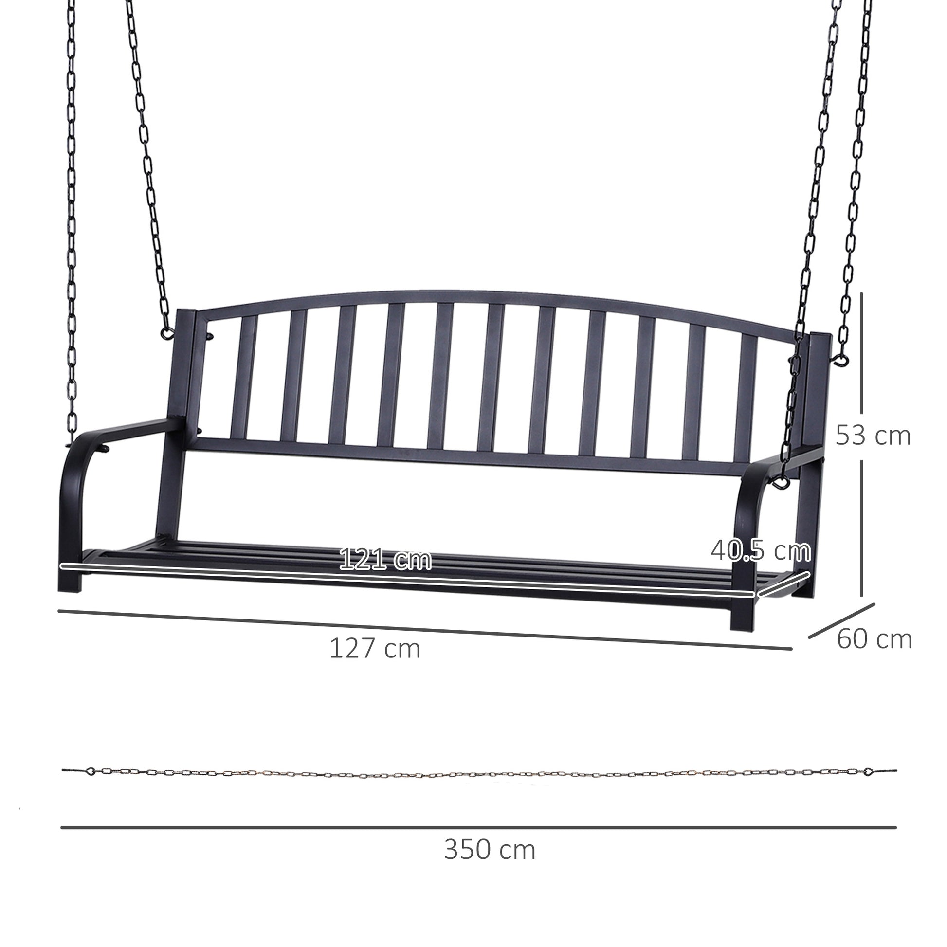 Outsunny Garden Swing Chair Patio Metal 2 Seater Swing Bench Porch Balcony Bench Loveseat Minimalist Style - Black