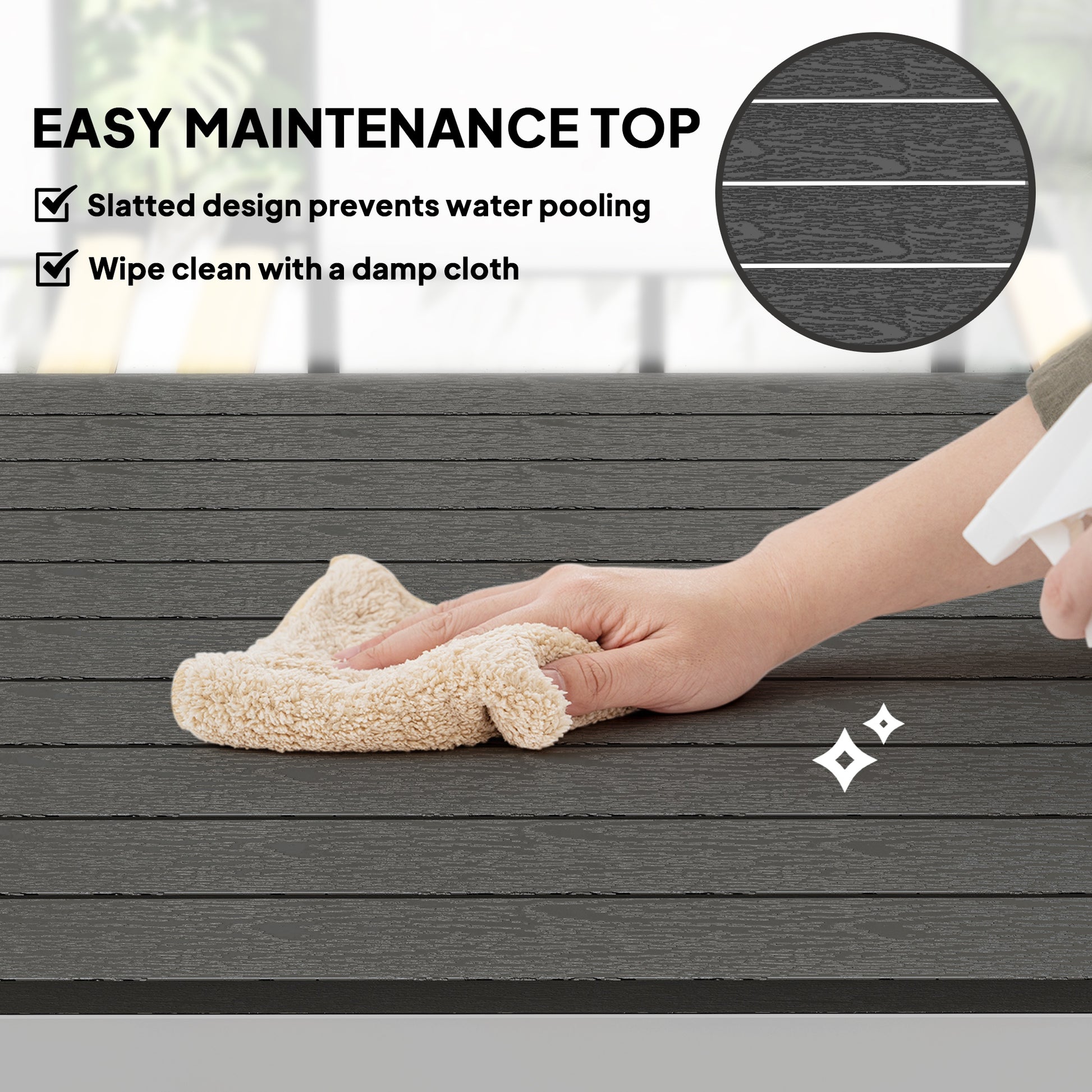 Transform your outdoor space with the Outsunny Garden Dining Table. Designed with a sleek, wood-effect top in a modern minimalist style, this table complements any garden or patio. It seats 4-6 people comfortably and features a robust, easy-to-clean PS top and a water-resistant, rust-resistant frame, making it the great choice for any outdoor dining area.