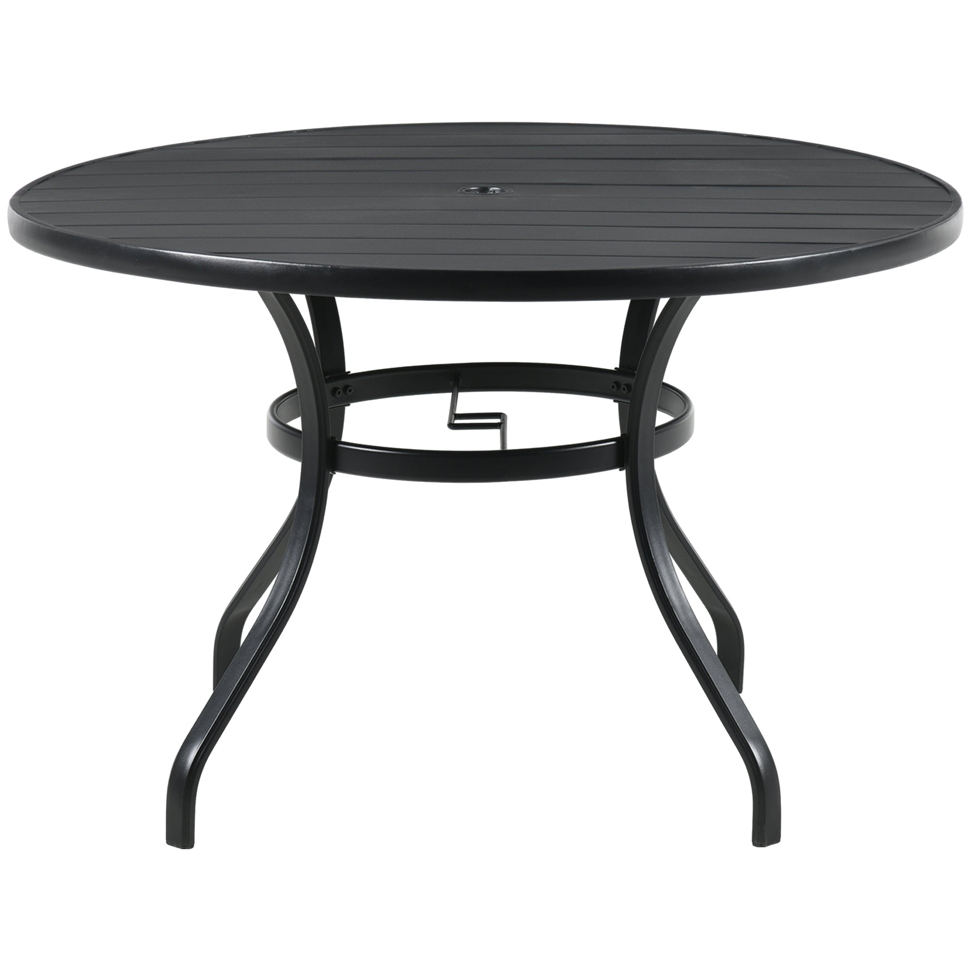 Outsunny Garden Table with Parasol Hole, Outdoor Dining Garden Table for Four Persons, Round Patio Table with Slatted Metal Top, Black