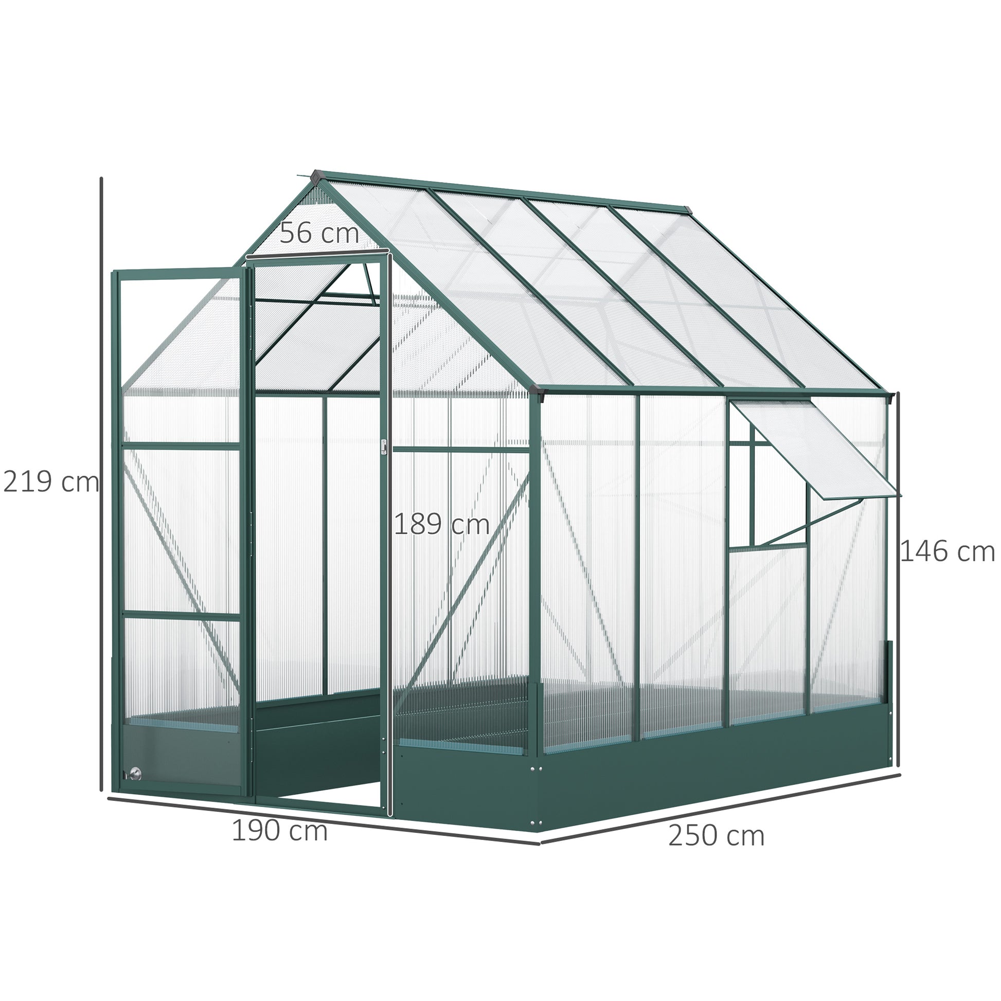 Outsunny Garden Walk-in Aluminium Greenhouse Polycarbonate with Plant Bed ,Temperature Controlled Window, Foundation, 6 x 8ft