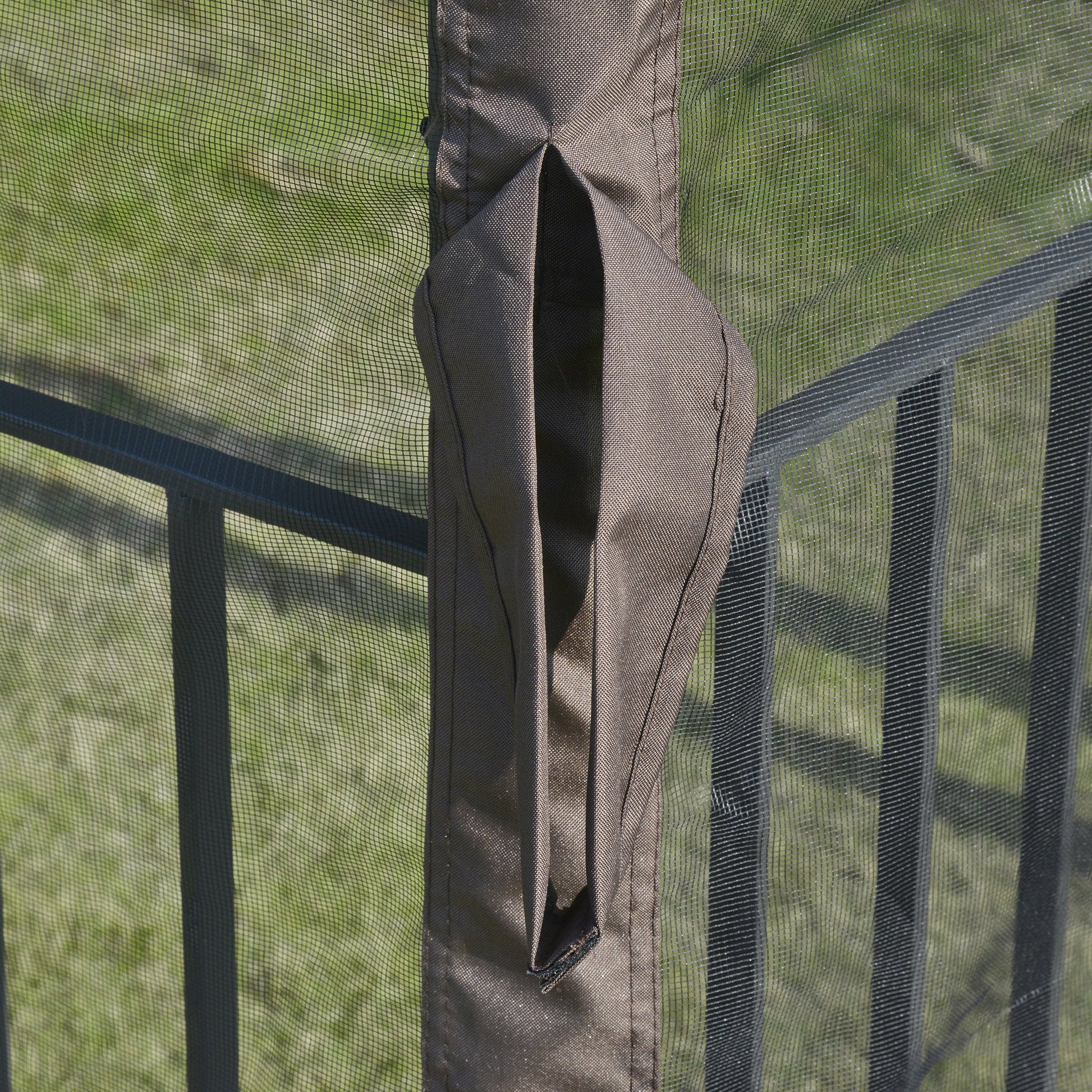 Outsunny Gazebo Garden Outdoor Canopy Double Tier Roof with Removable Mesh Curtains Display Shelves Top Hooks-Coffee