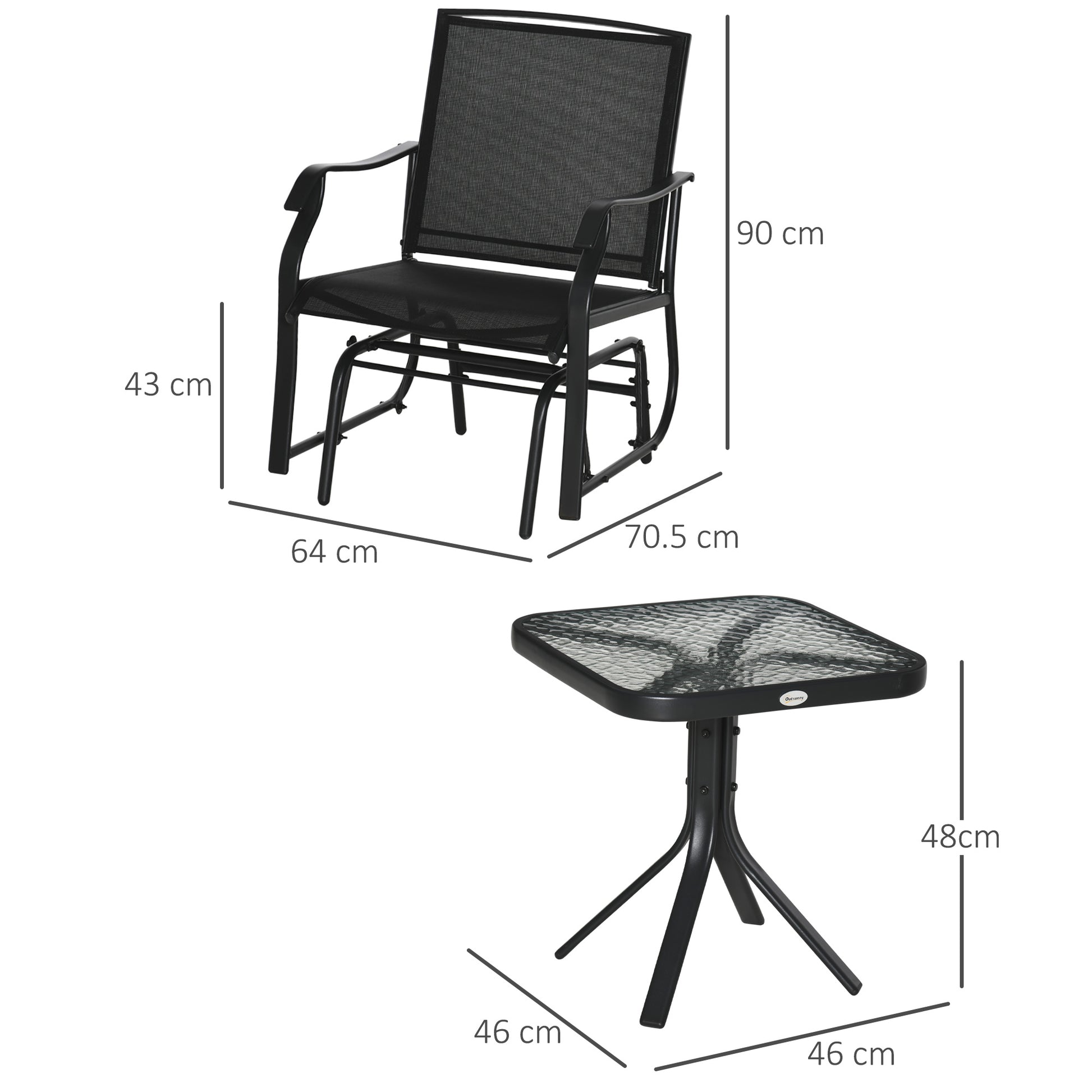 Outsunny Glider Rocking Chair & Table Set 2 Single Seaters Rocker Garden Swing Chair Patio Furniture Bistro Set