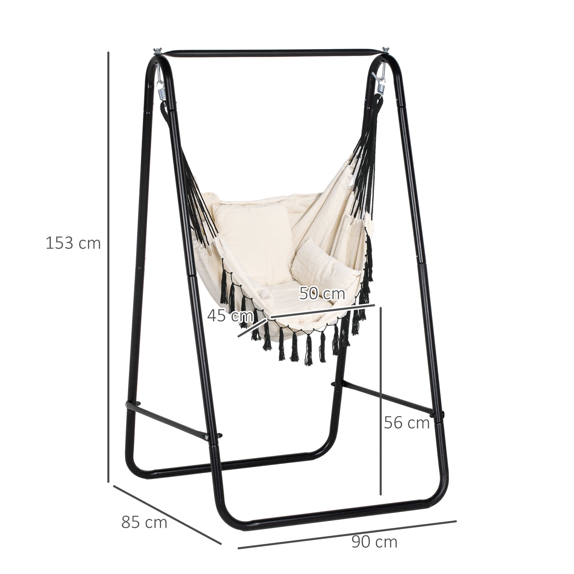 Outsunny Hammock Chair with Stand, Hammock Swing Chair with Cushion, Cream White
