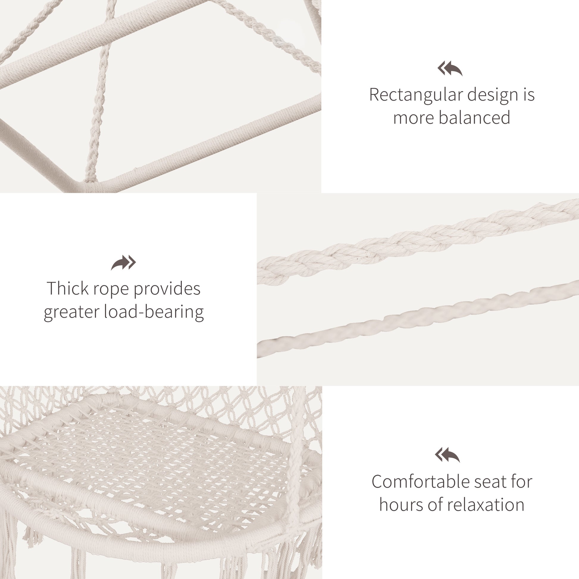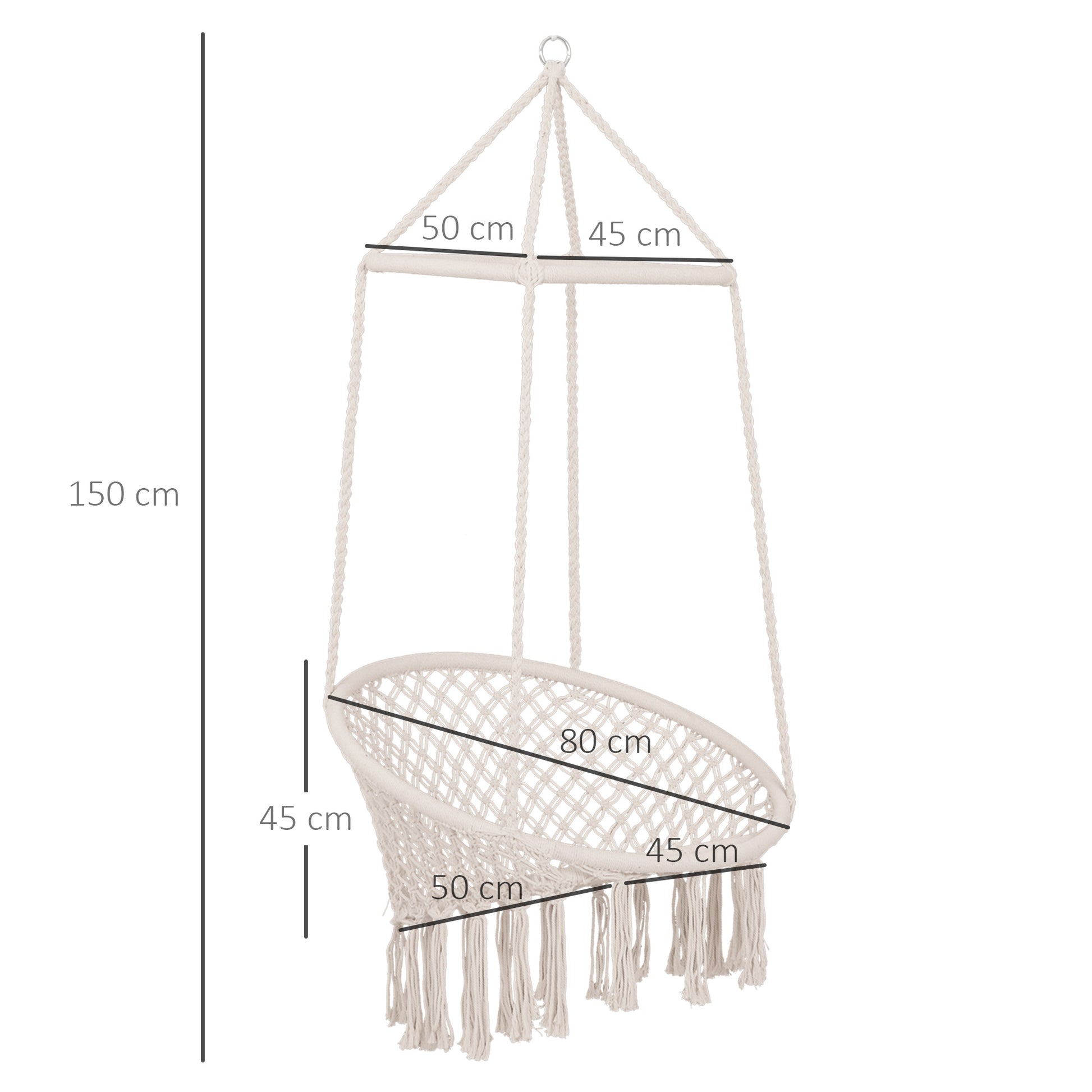 Make the most of your lazy days with this hanging rope chair from Outsunny. Made from high quality cotton in a soft beige hue, our garden hammock chair is crafted into an elegant Bohemian knitted design with tassels on the end for a beautiful finishing touch. Superbly strong and durable, the hanging seat is able to solidly hold up to 100kg, giving you complete peace of mind when sitting on it. Our hanging chair is easy to install – simply hang and go, giving you more time to relax the day away.