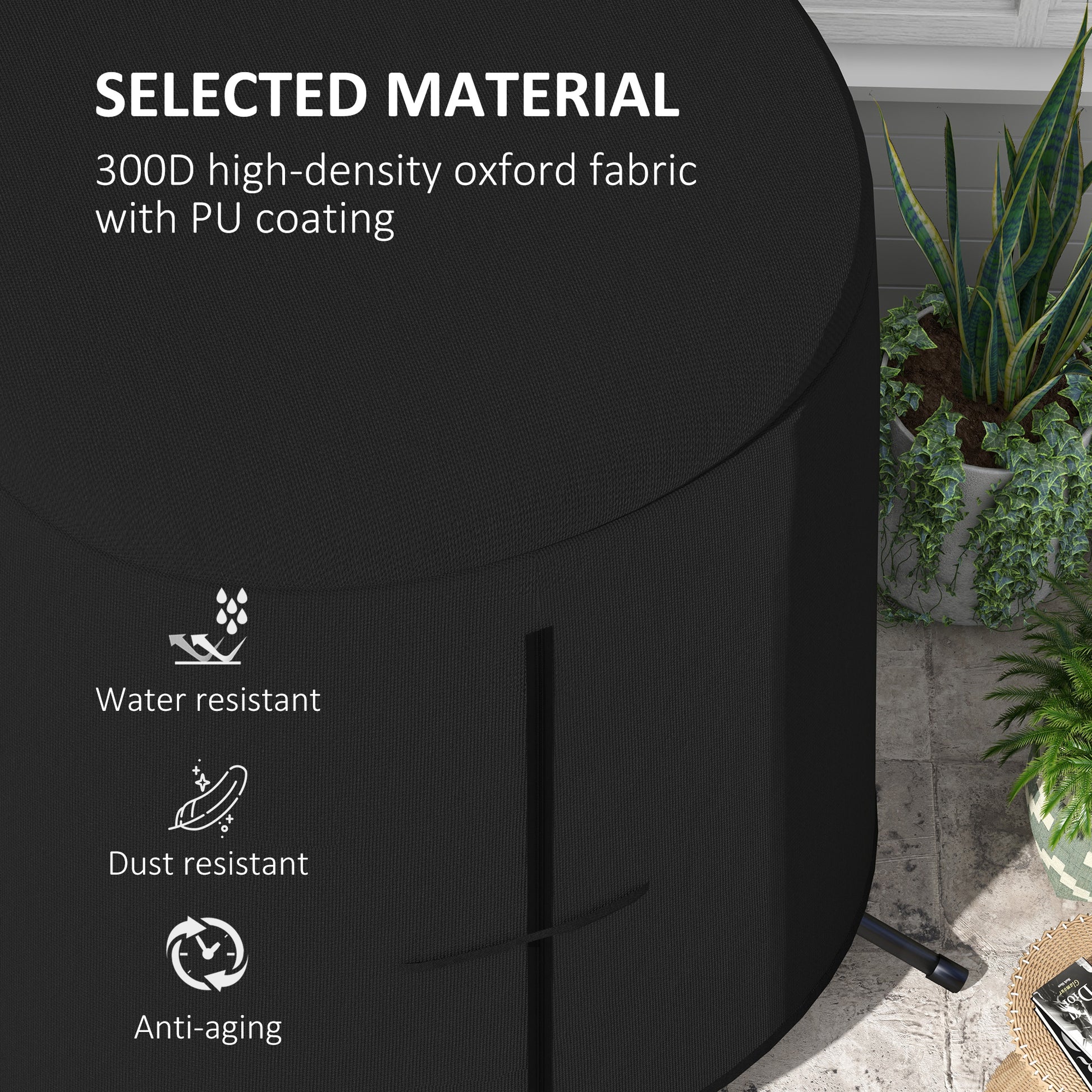 Protect your Outsunny egg chair with this cover. Made from oxford fabric, it is a durable piece, with a plastic coating to create a weather-resistant top layer: protects against sun, rain, wind and dirt. The zip fastening makes it easy to put on and remove, with a pull cord fastening for a tight and secure fit.