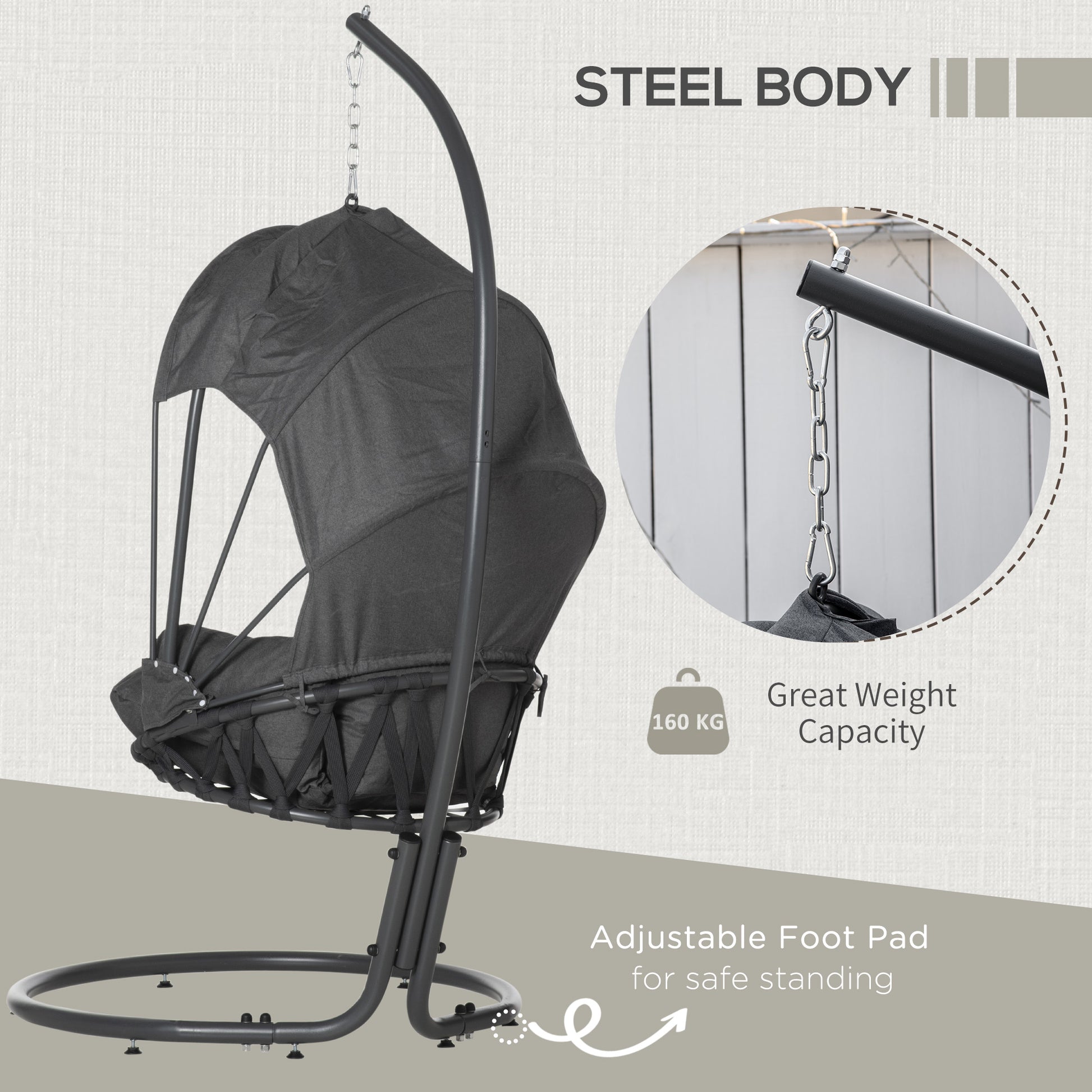 Make the most of your lazy days with this modern hanging chair from Outsunny. The retractable canopy, curved back, spacious seat, and soft cushion offer a comfortable sitting experience. The hanging stand is crafted from steel so it's strong, with a large base for balance. Easy to store with a foldable seating basket, space-saving and convenient. Relax and unwind, whenever you want.