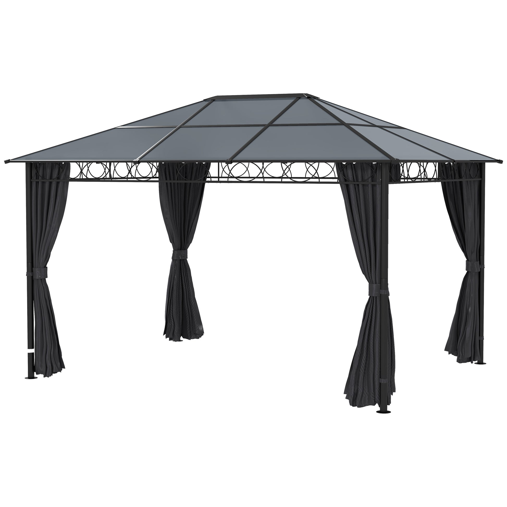 Outsunny Hardtop Gazebo Garden Pavilion with UV Resistant Polycarbonate Roof, Curtains, Steel & Aluminium Frame, 3 x 4m, Grey