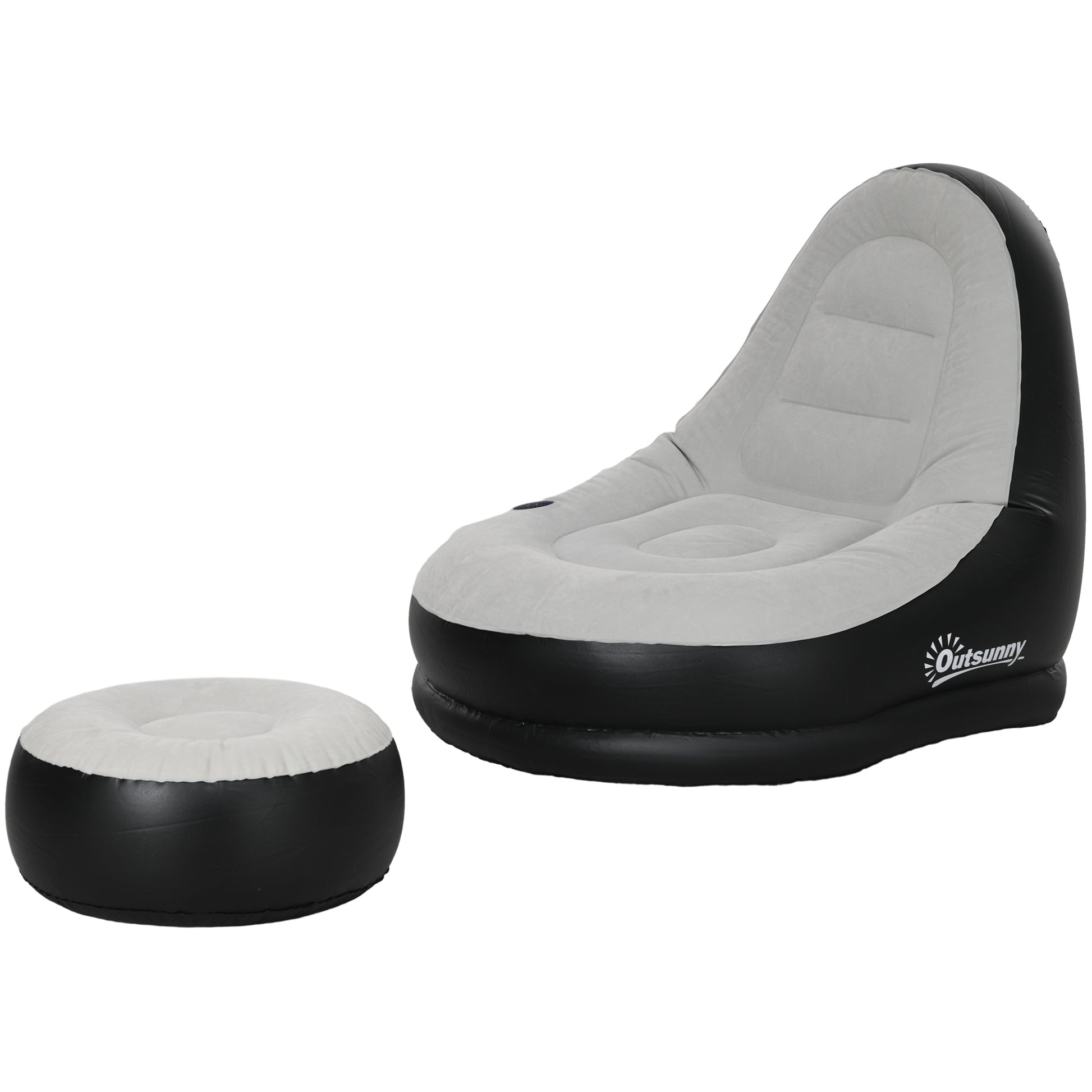 Outsunny Inflatable Sofa Chair and Foot Stool Set with Cup Holder, for Gaming, Reading and Movie Watching, Grey