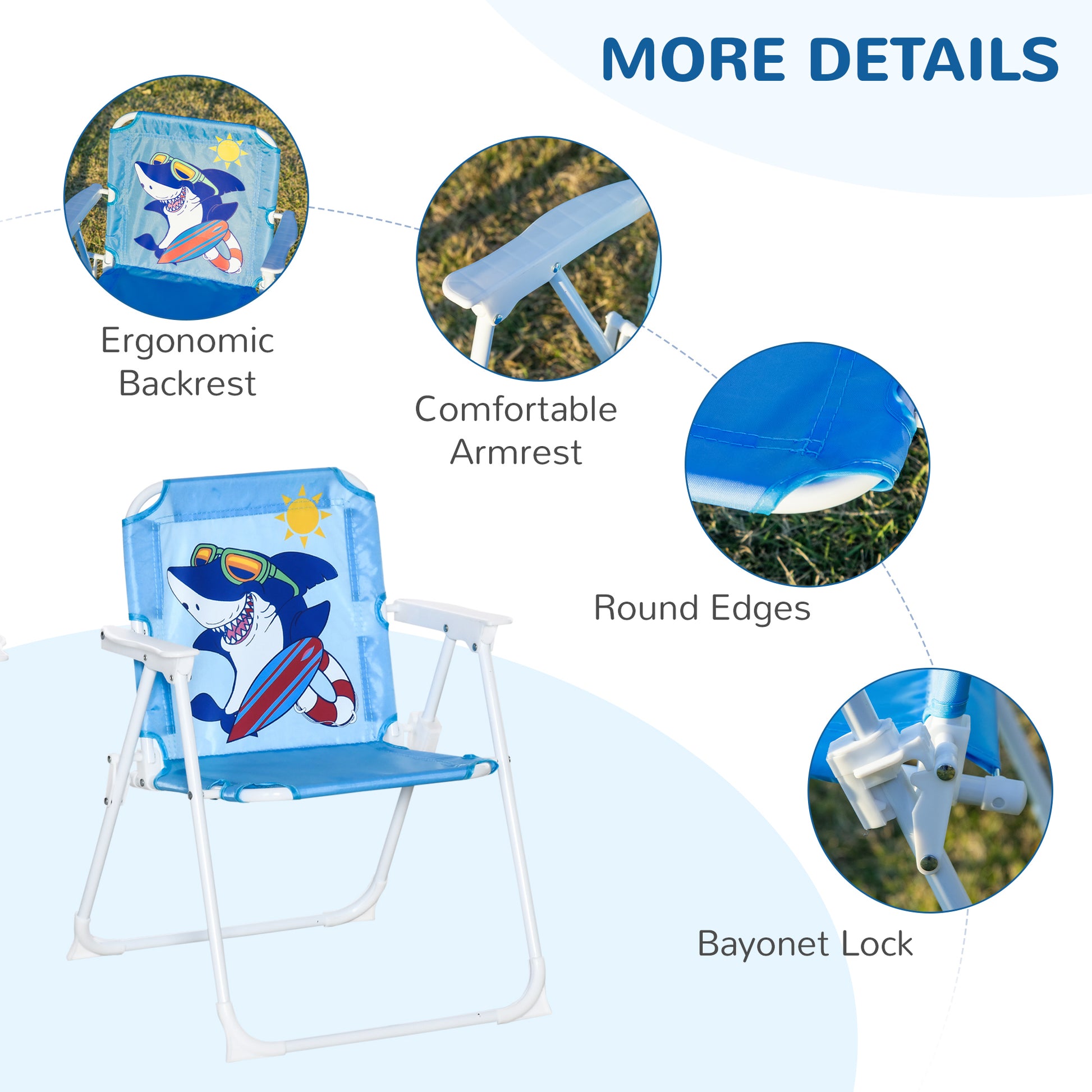 Outsunny Kids Picnic & Table Chair set, Outdoor Folding Garden Furniture w/ Shark Design, Removable, Adjustable Sun Umbrella, Ages 3-6 Years - Blue